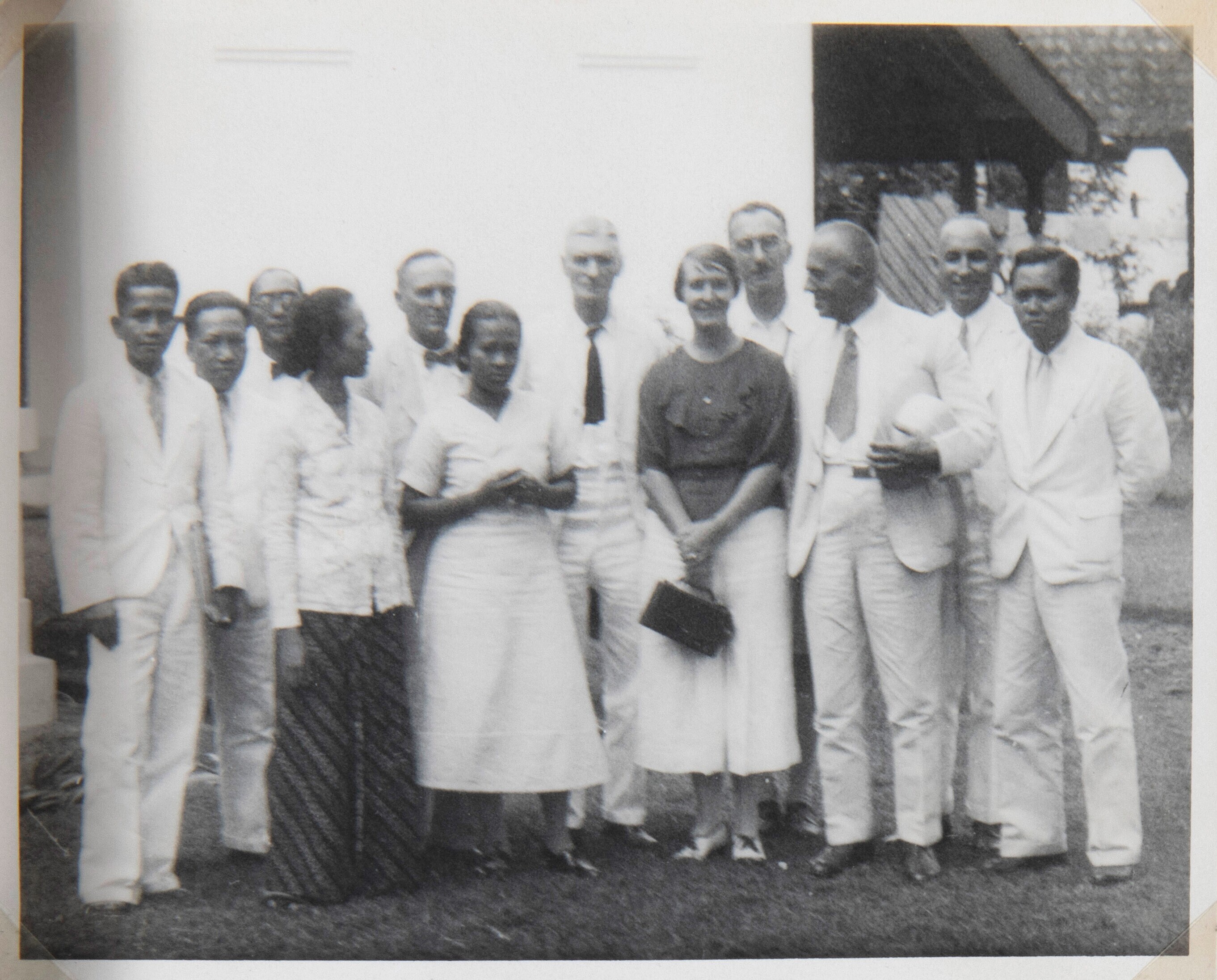 Groepsportret bij een hygiënecentrum in Poerwokerto ...