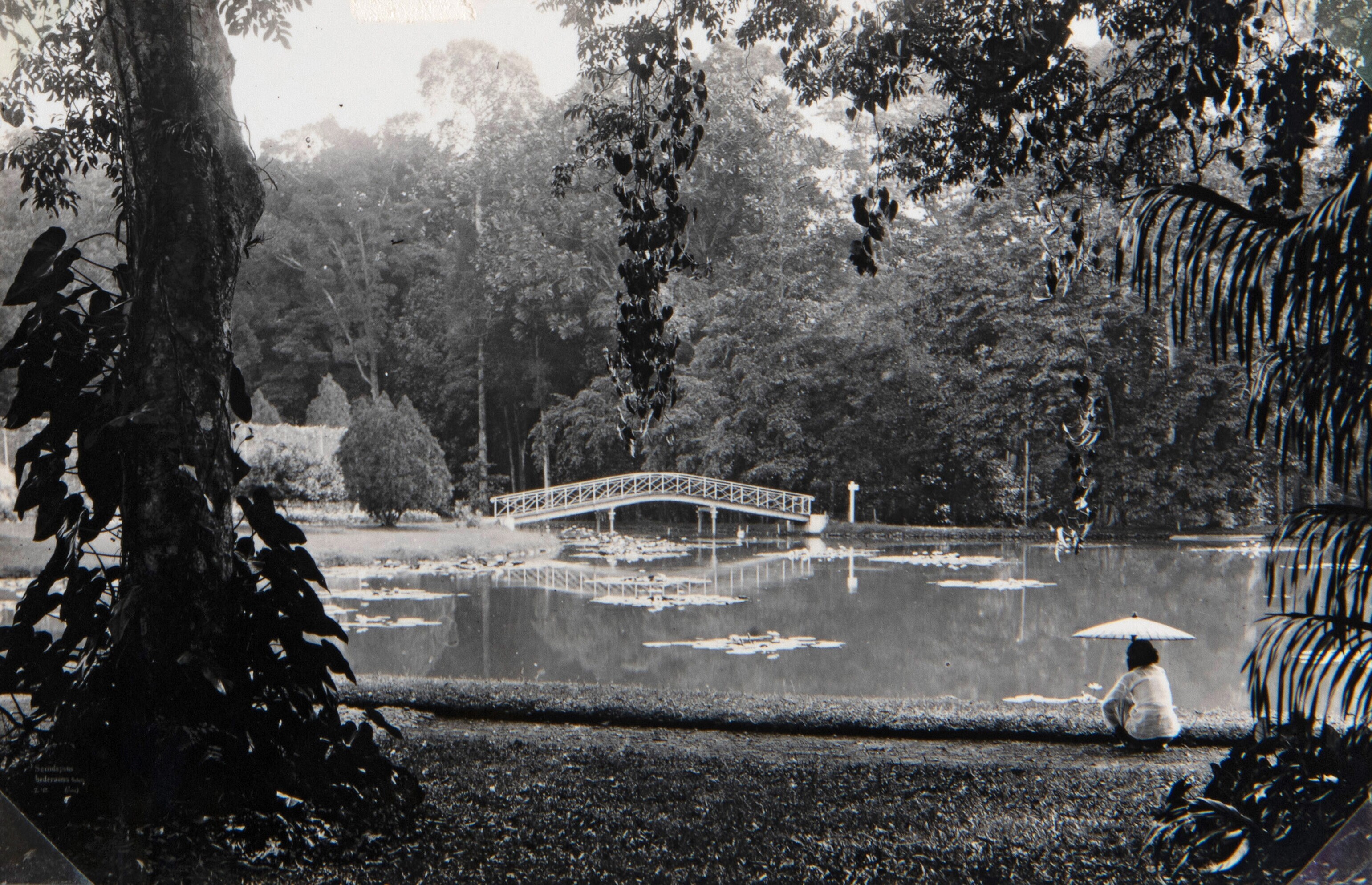 Brug over een vijver in 's Lands Plantentuin, Buiten...