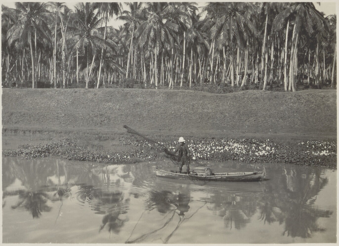 A fisherman in a proa throwing his net
