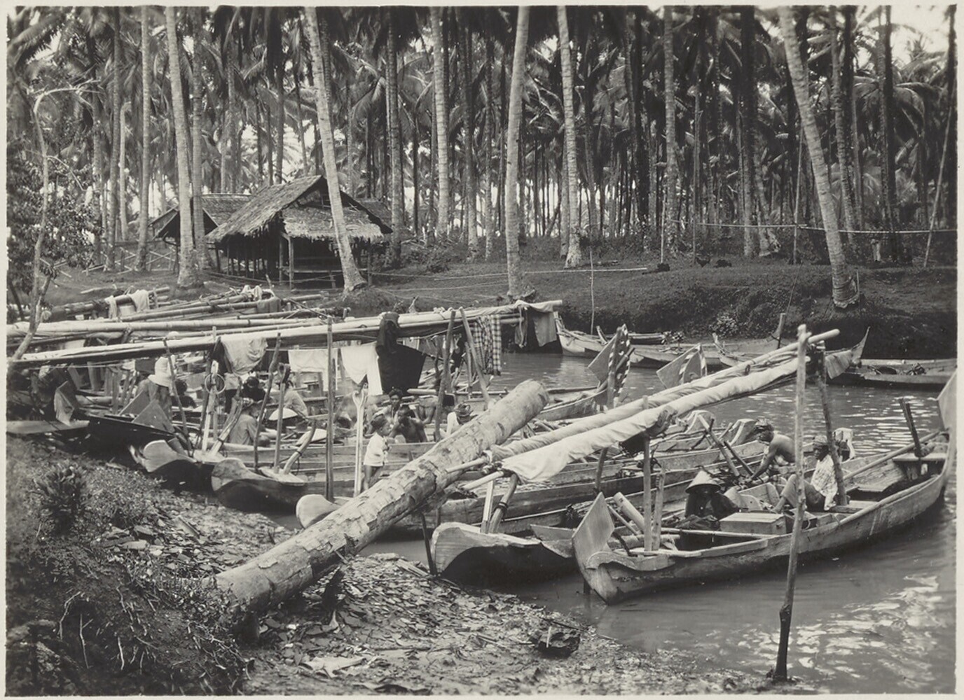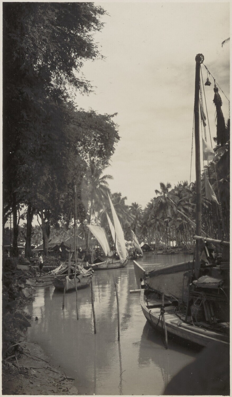 Prauwen in de haven van Laboehan