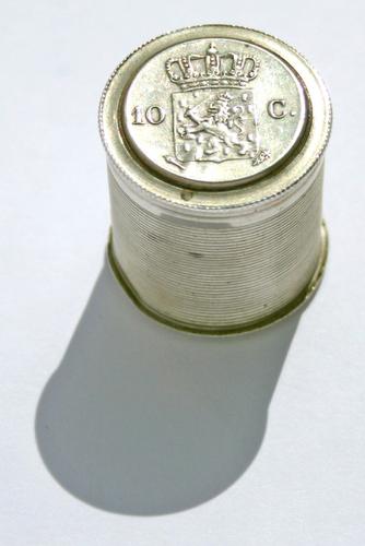 Muntendoosje. Glad cilindrisch doosje met deksel 1 S...