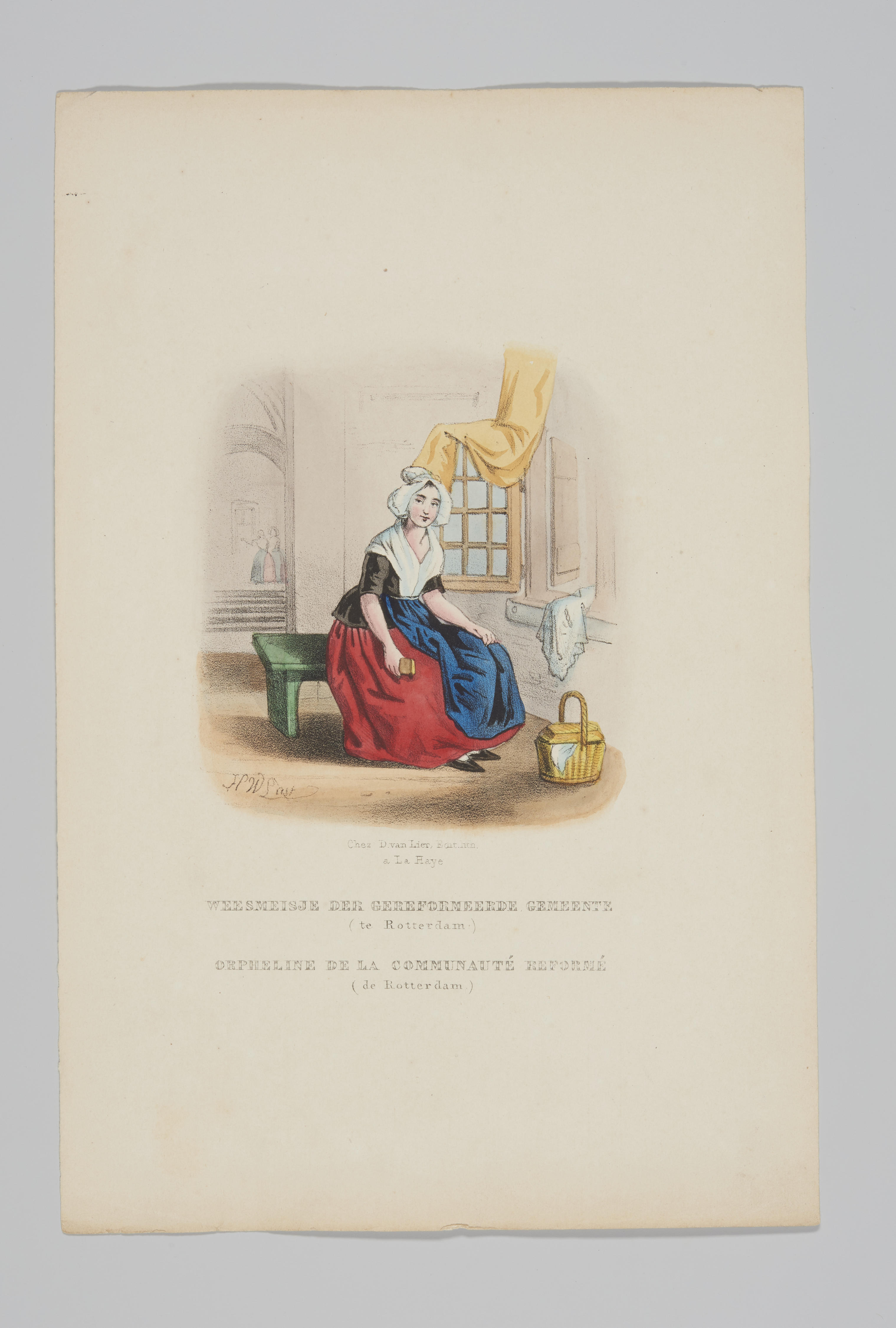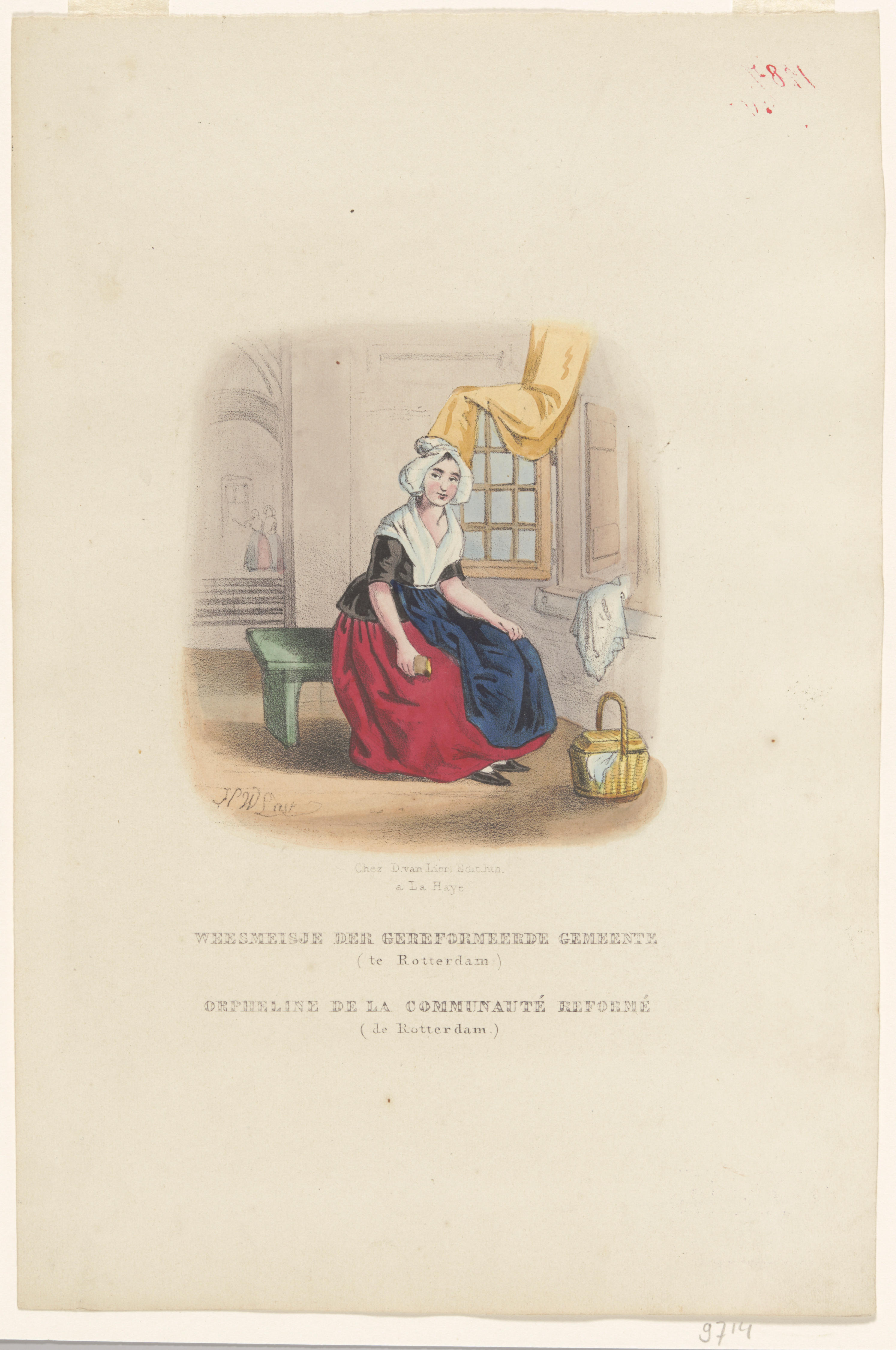 Prent van een weesmeisje uit Rotterdam, circa 1850