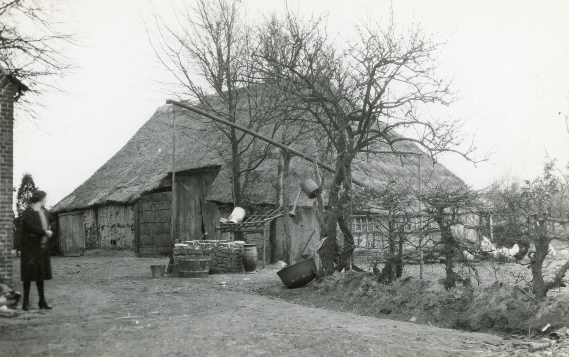 Schuur en waterput, Klein Borkel, 1930 (zwart-wit foto)