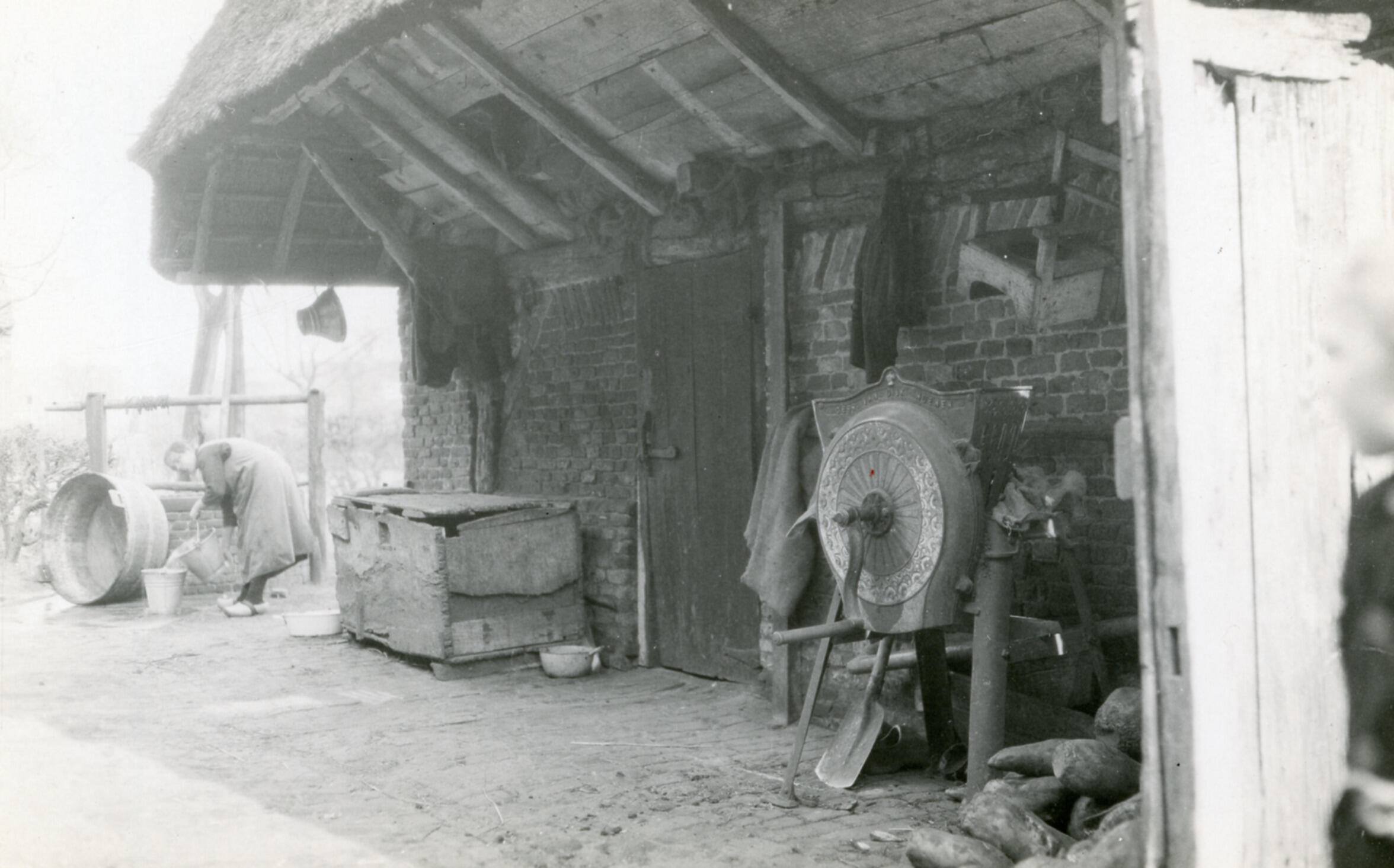 Achterzijde van een boerderij, Gemert, 1930 (zwart-w...