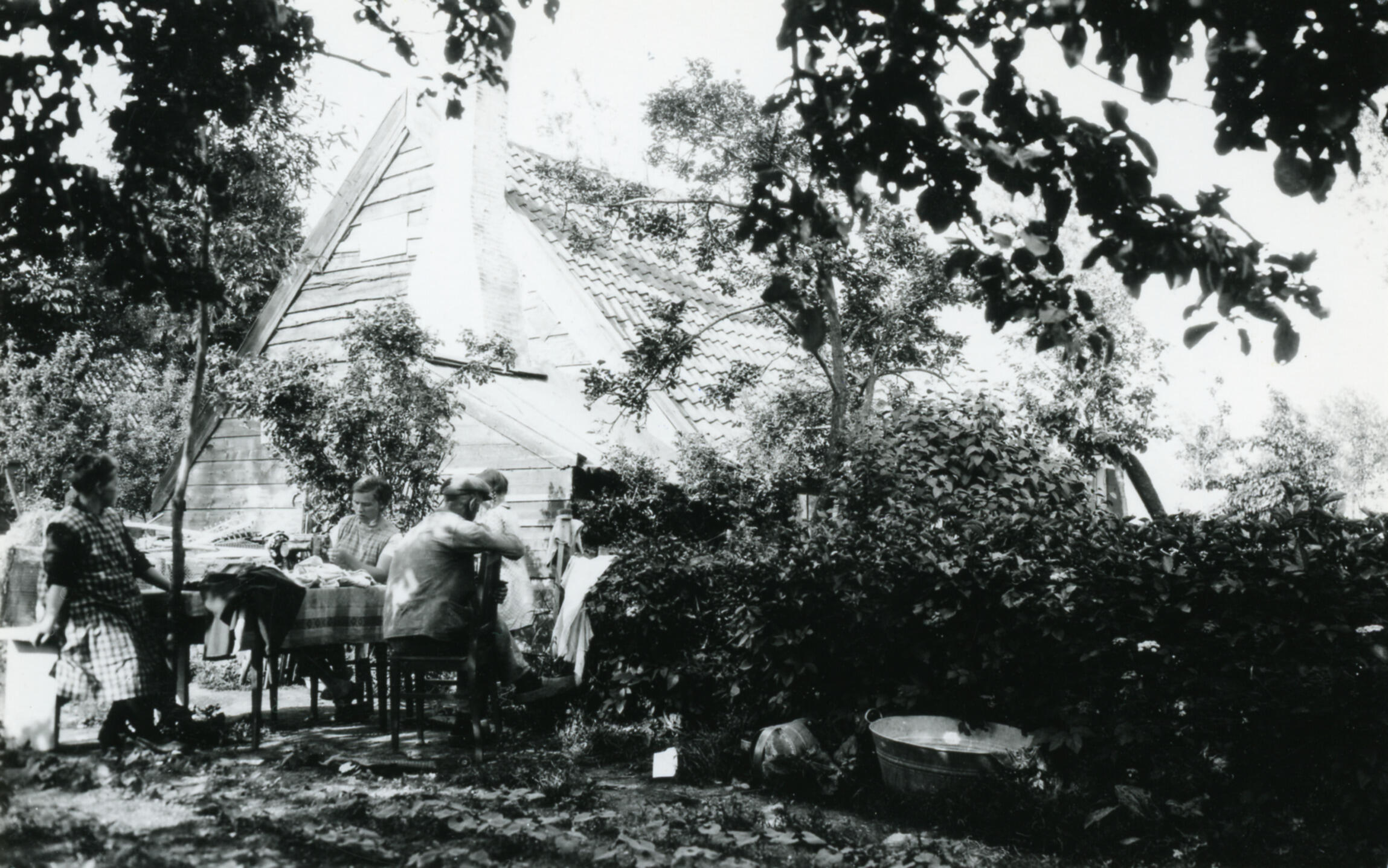 Gezelschap bij een boerderij, Breukeleveen, 1939 (zw...