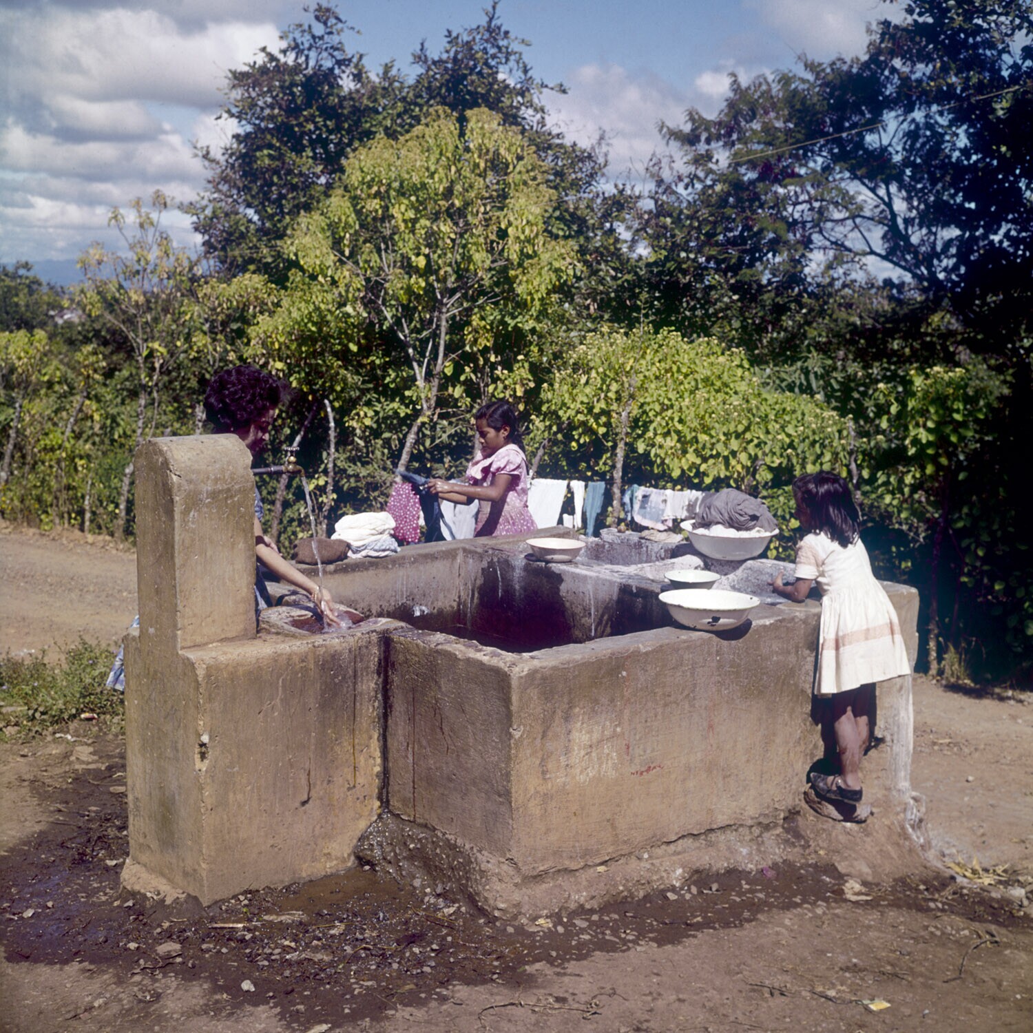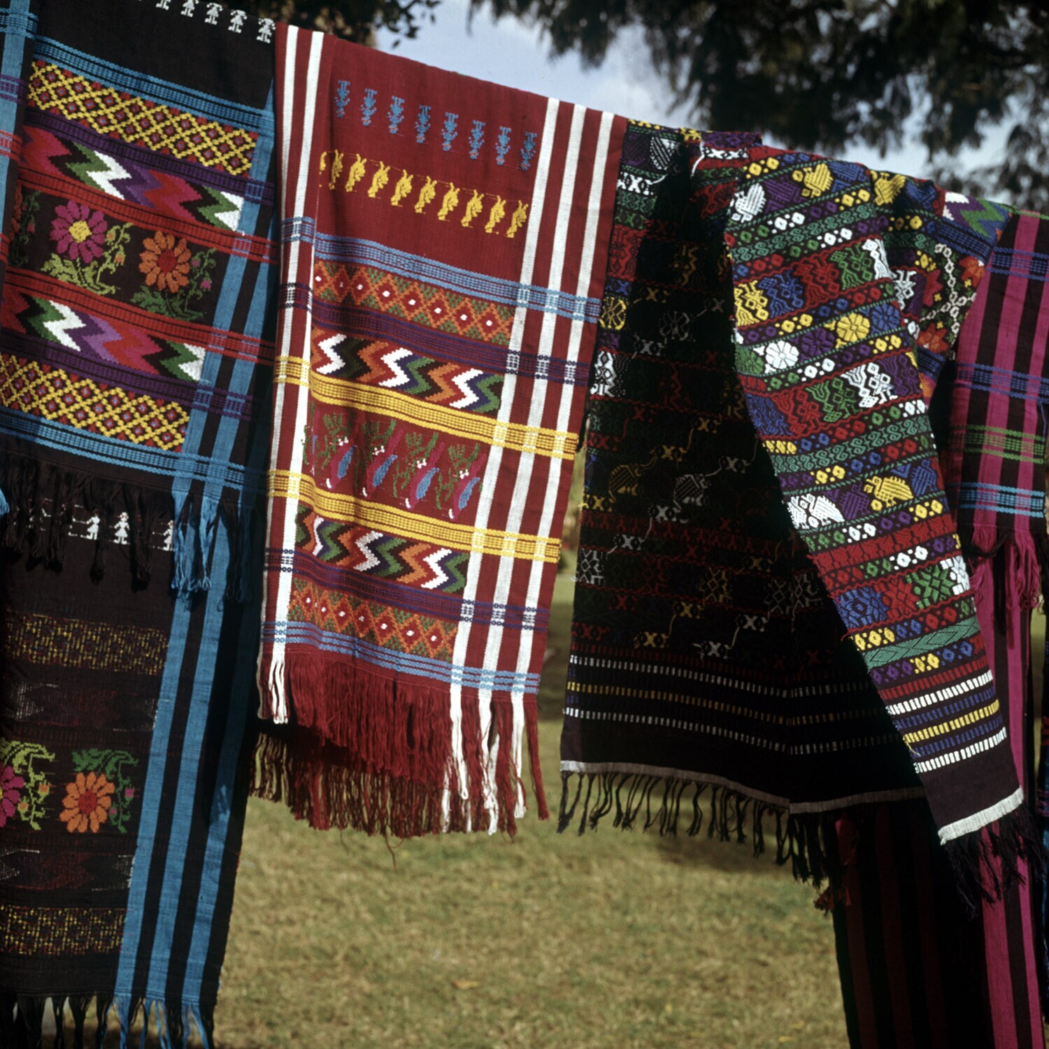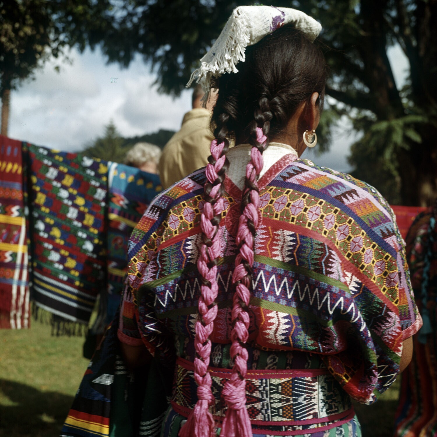 Een Maya vrouw gekleed in een huipil, op de rug gezi...