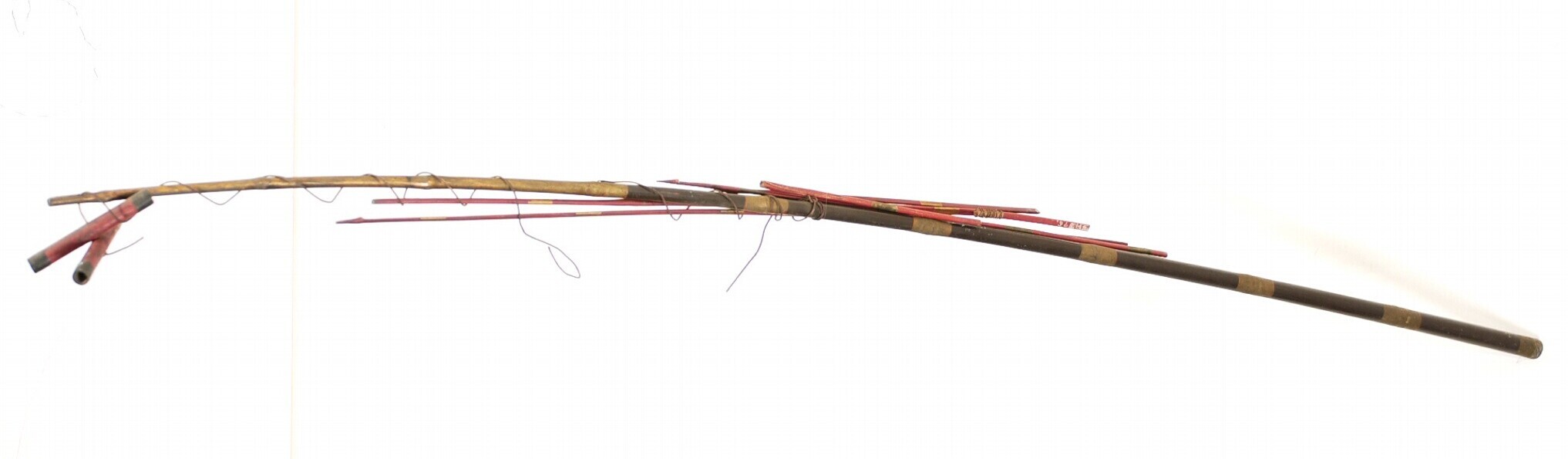 Stokken van bamboe als raamwerk voor een klein kruisnet