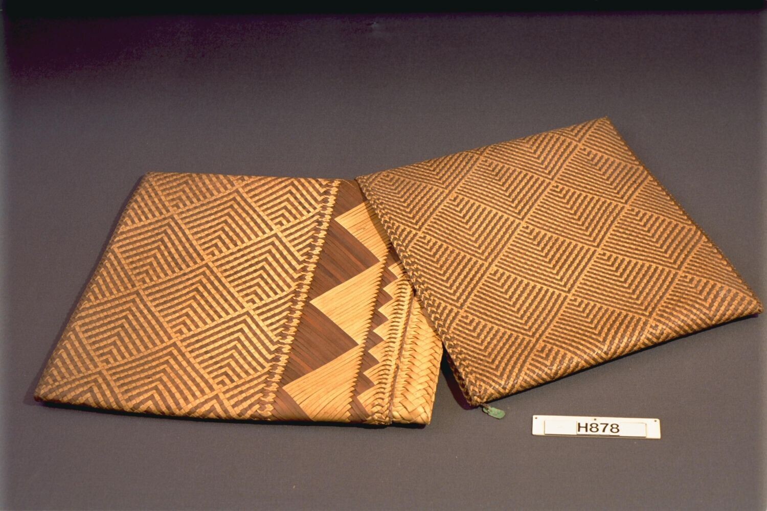 Twee mandjes van gevlochten lontarblad, behoren in e...