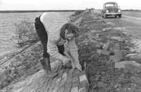 Aanleg van de dijk van de Wieringermeer tussen Medem...