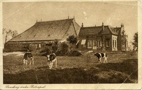 Foto in kleur van een stelpboerderij met ligboxenstal
