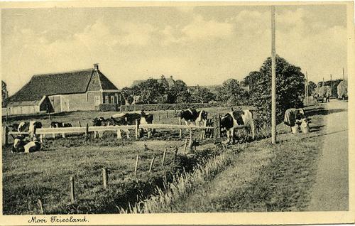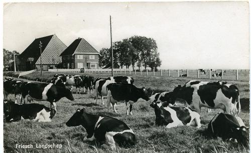 Prentbriefkaart in kleur van oud Friese Greidboerder...