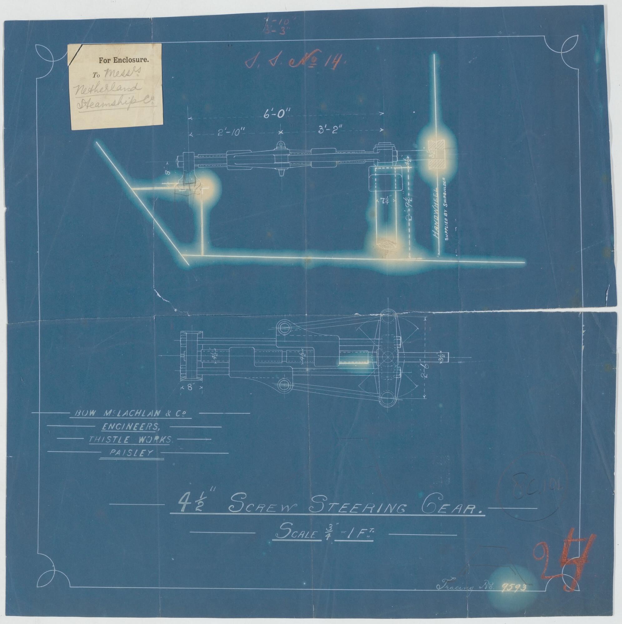 Stuurmachine van het passagiersschip ss. Prins Wille...