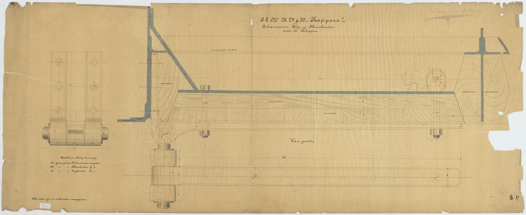 Scharnieren, oog- en moerbouten voor de kleppen van ...
