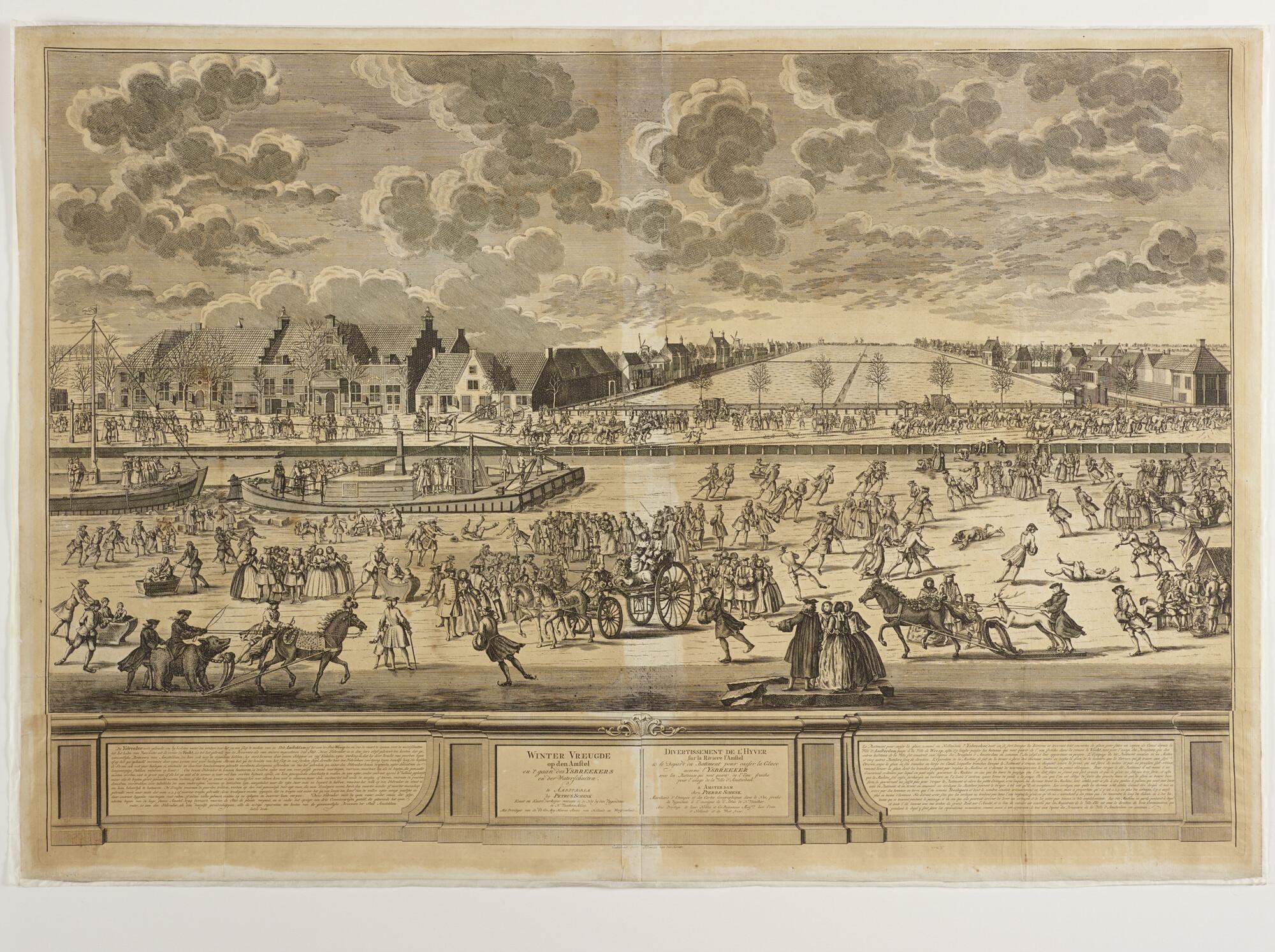 Prent met een afbeelding van de dichtgevroren Amstel...