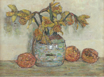 Stilleven met narcissen en citroenen