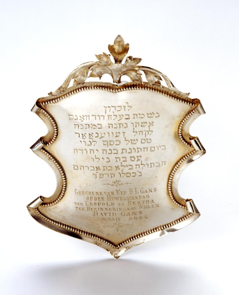 Toraschild geschonken ter nagedachtenis aan David Gans