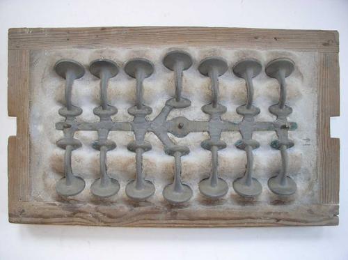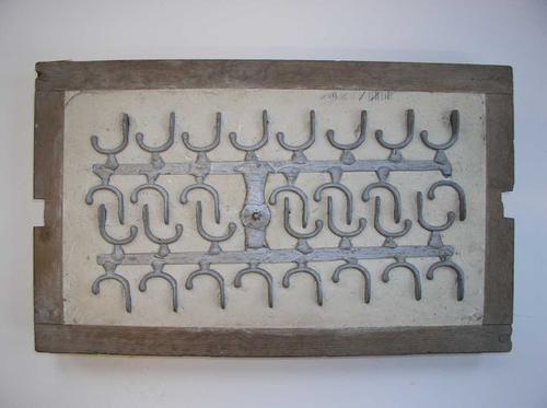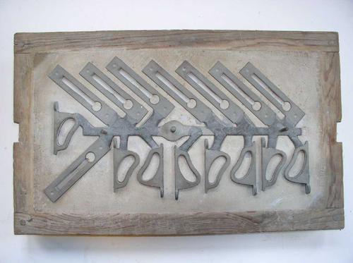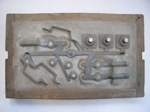 Gietmal met 4 stel tramcoupe deurkrukken.