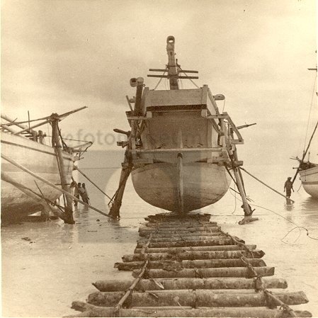 Tewaterlating van een prahu patorani. Sulawesi (Cele...