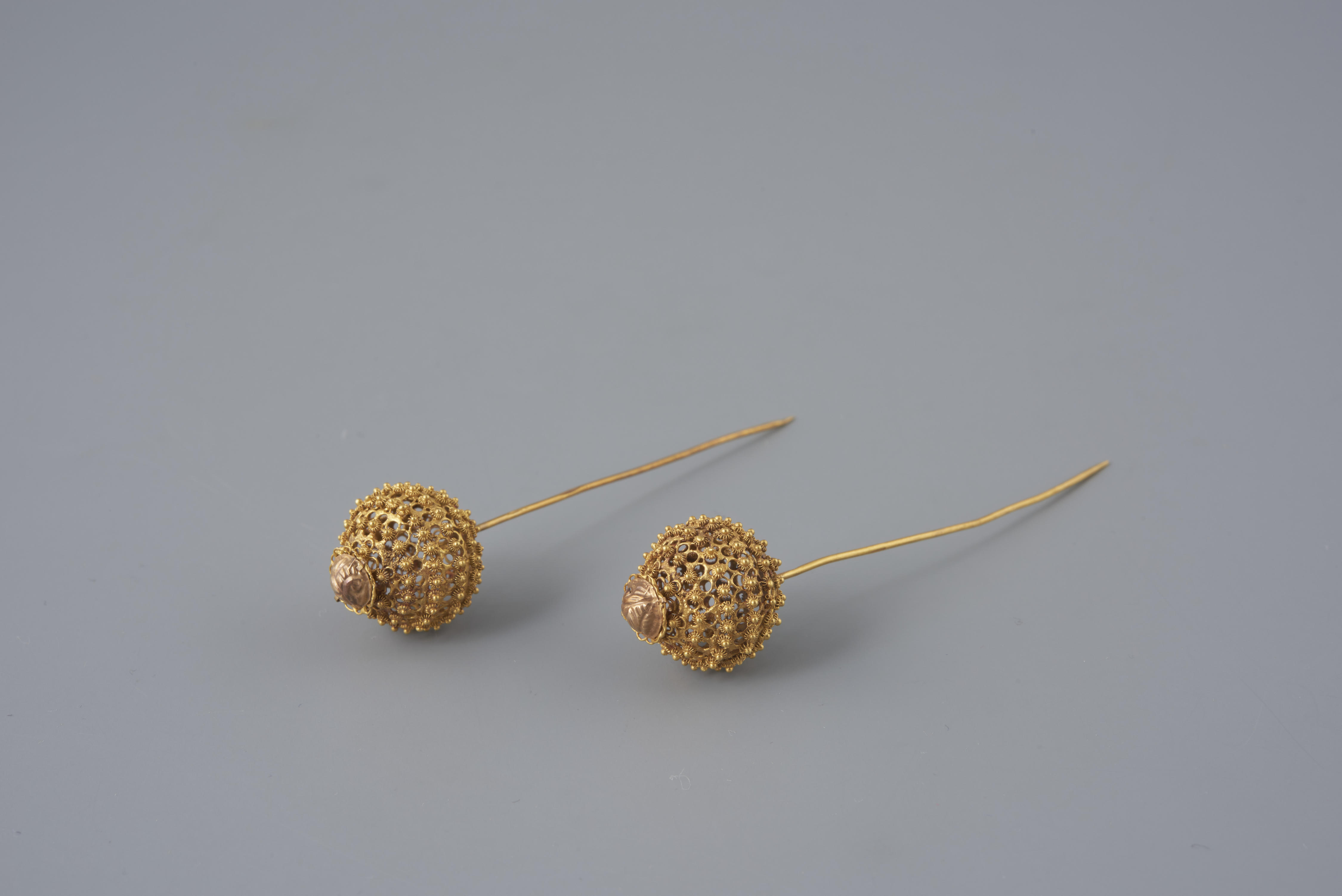 Paar vergulde messing oorijzerstiften, provincie Gro...