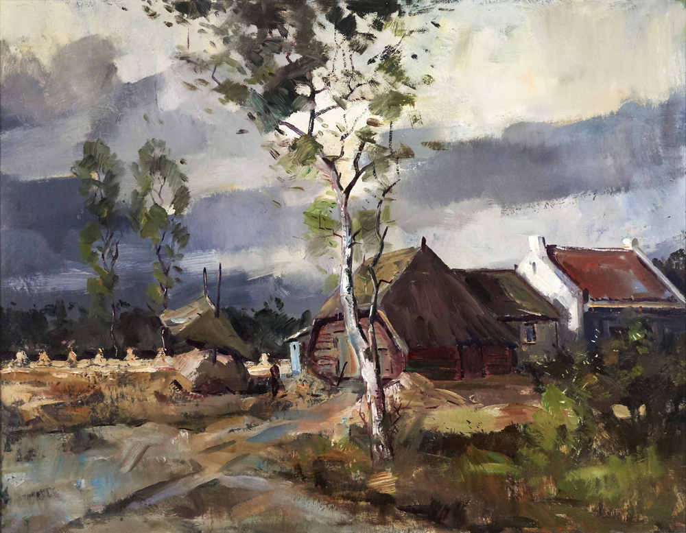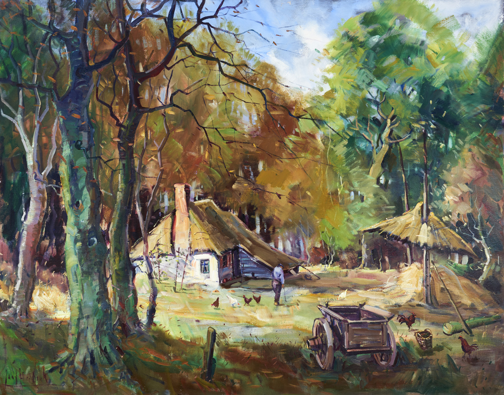 Veluwse boerderij met hooimijt en berkenboom