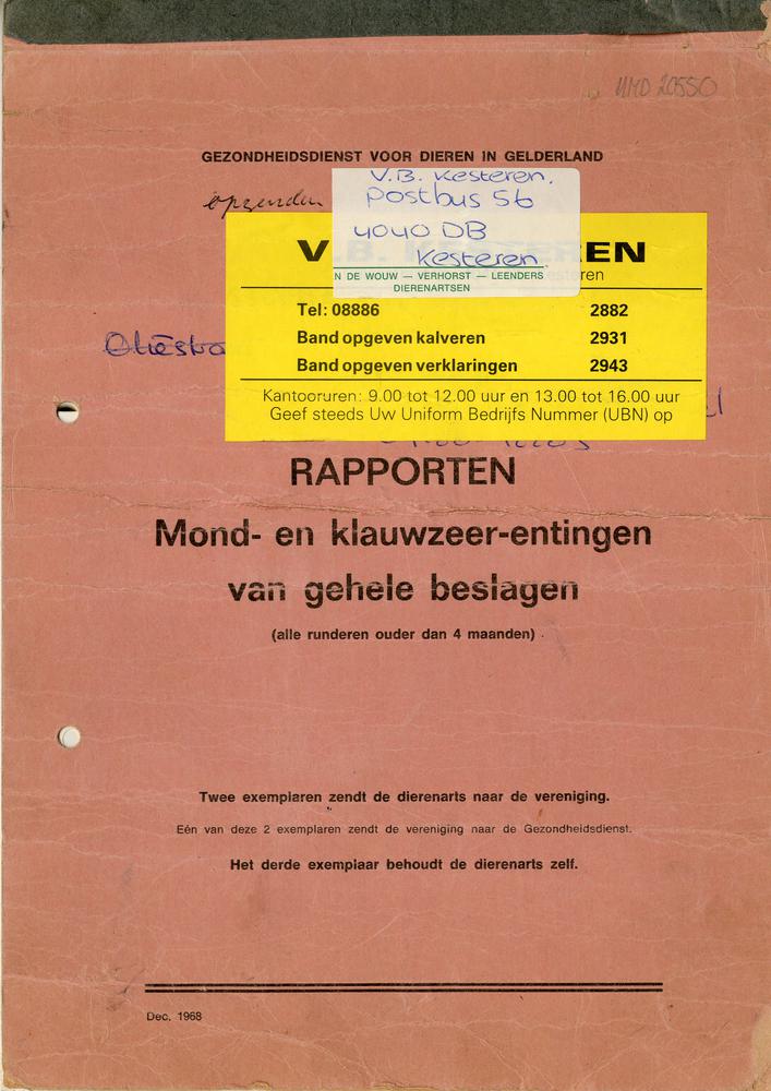 Blok met rapporten m.b.t. mond- en klauwzeerentingen...