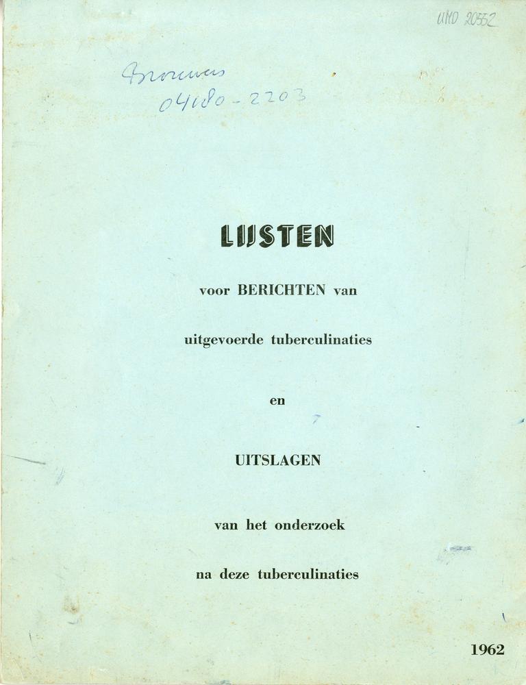 Blok met formulieren ten behoeve van tuberculose-ond...