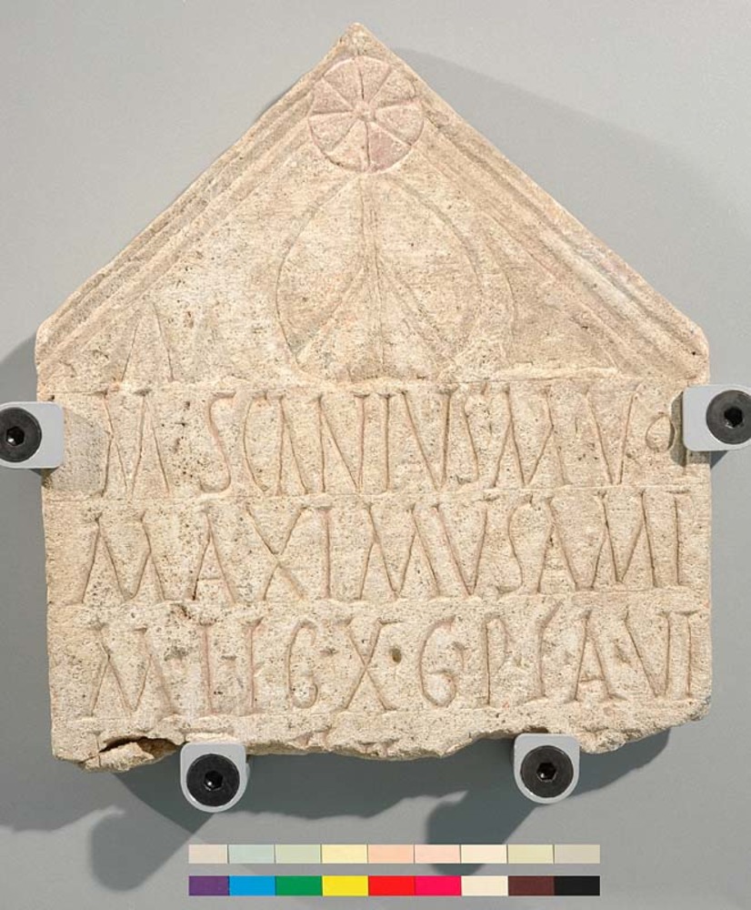 Grafsteen van kalksteen uit de Romeinse tijd, van Ma...