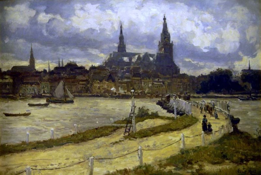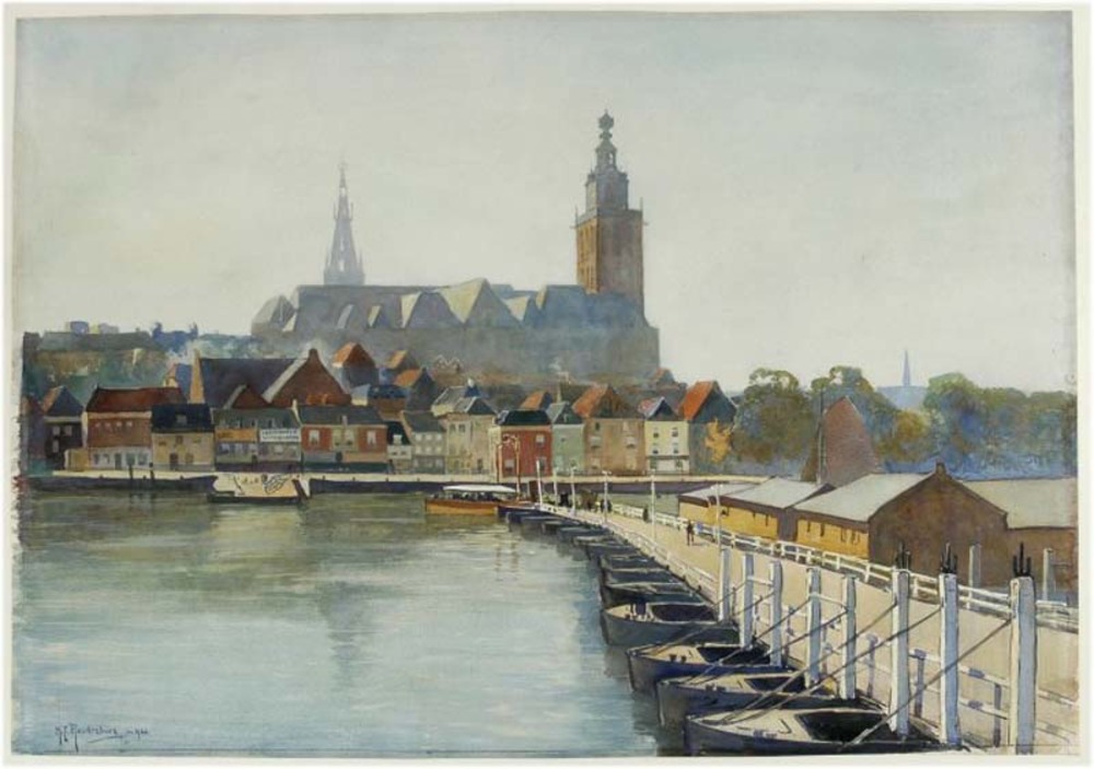 Gezicht op Nijmegen vanaf de Lentse oever