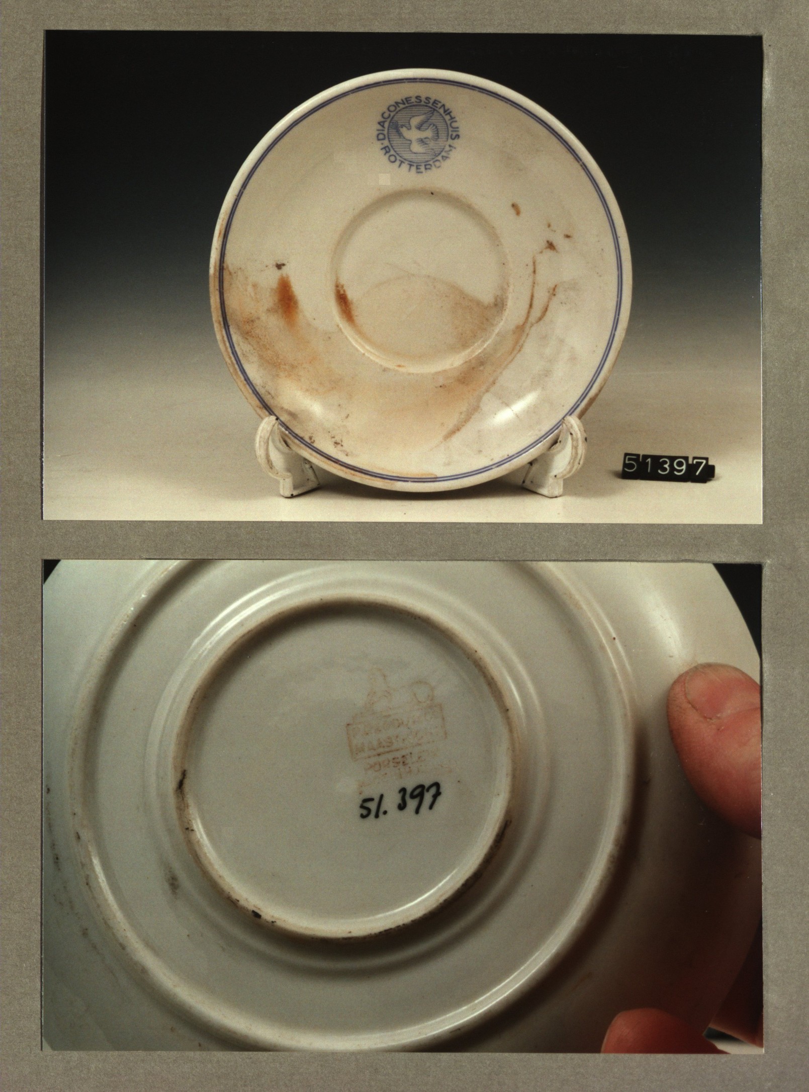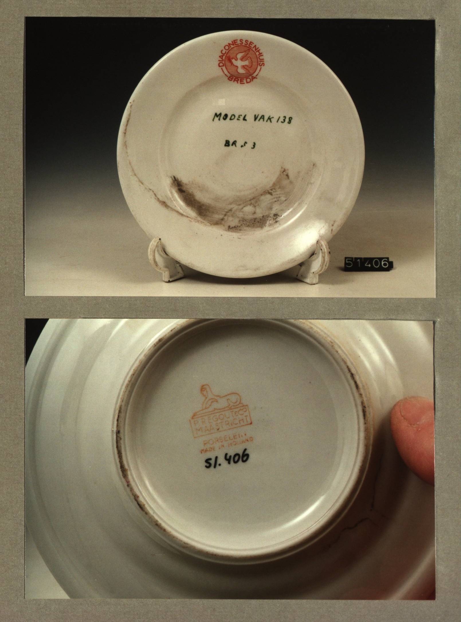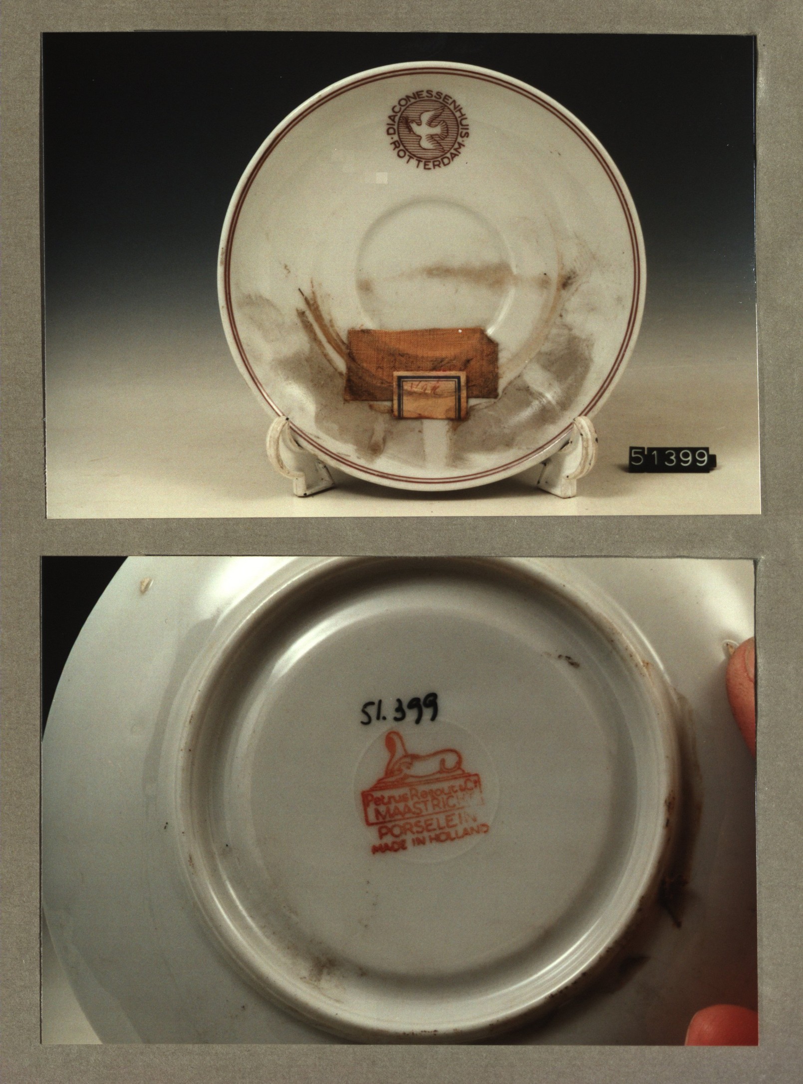 Plat bord, model P met decor Diaconessenhuis Breda