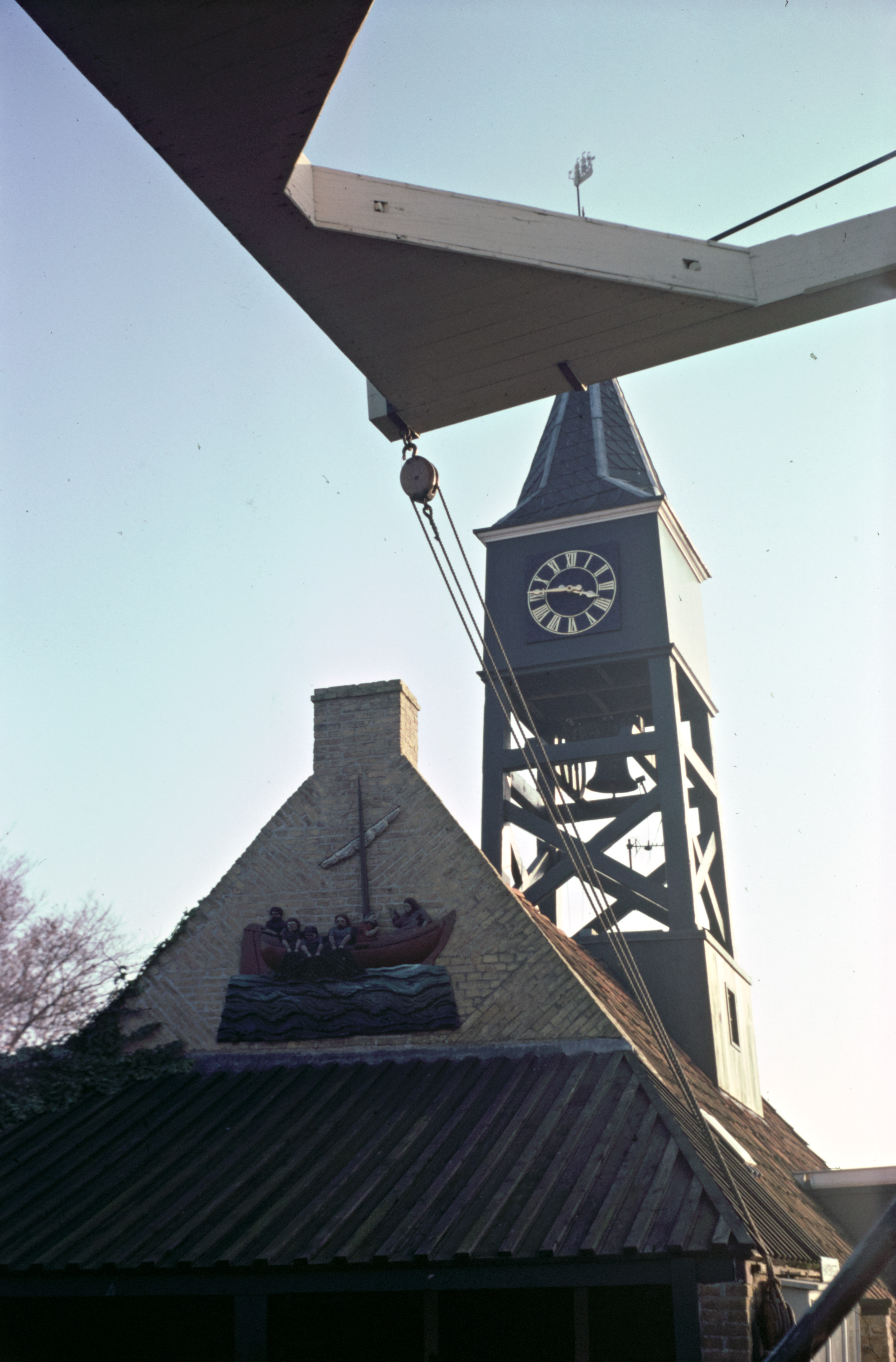 Sluishuis en klokkentorentje gezien van onder de oph...