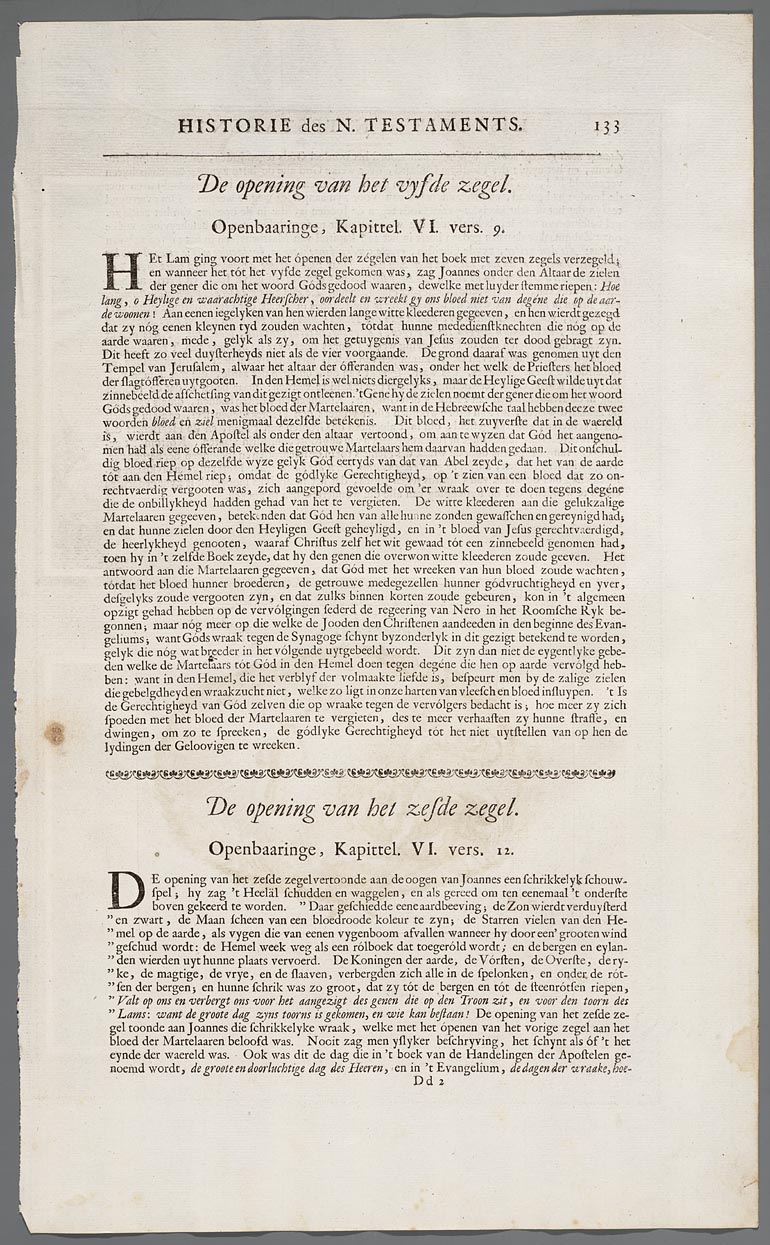 Historie des N. Testaments, De opening van het vyfde...