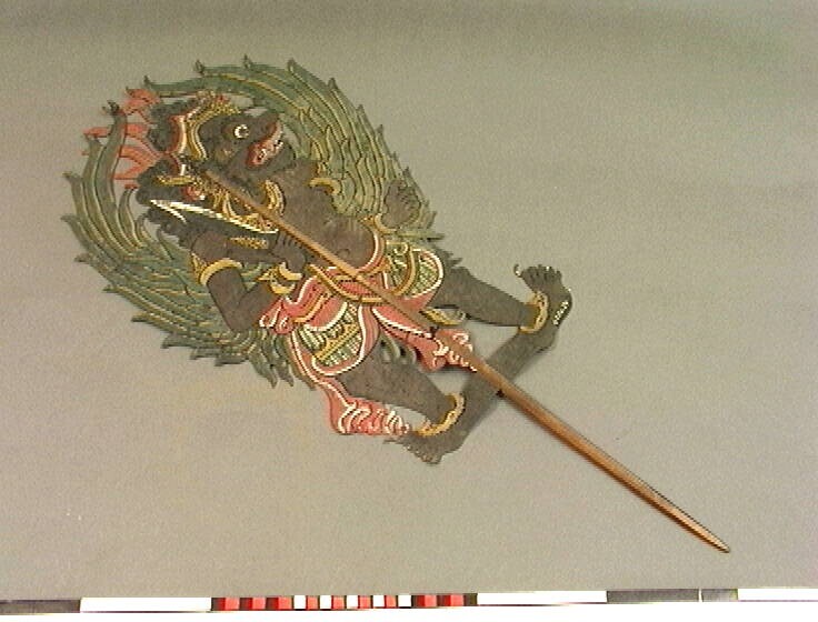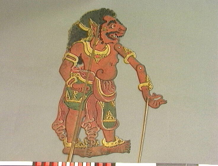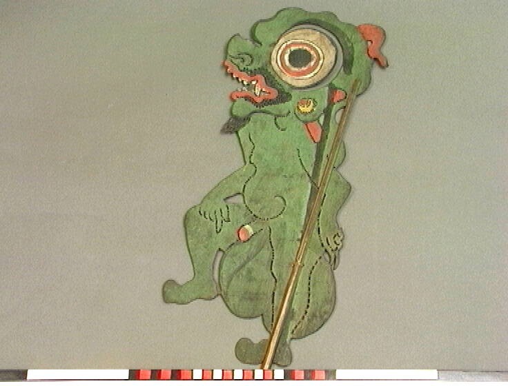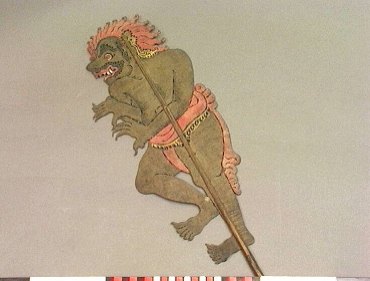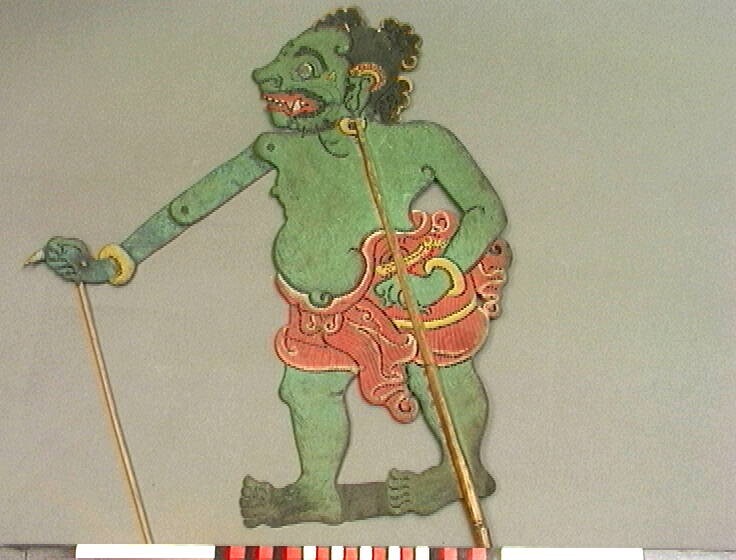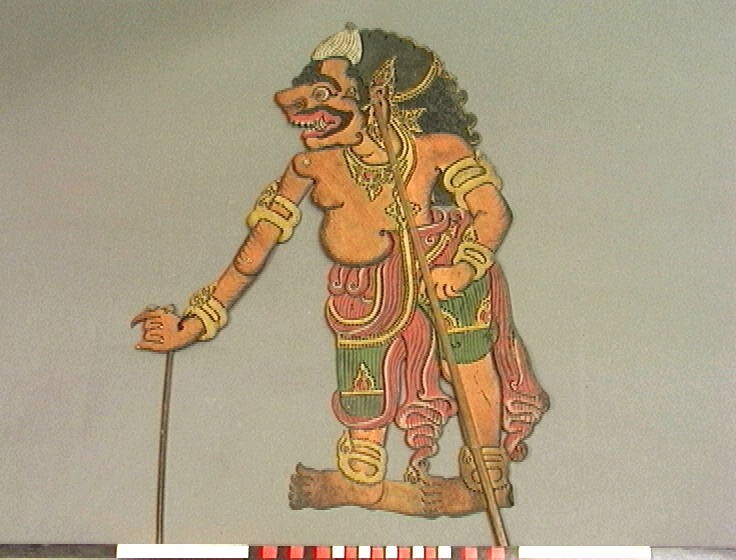 Wajangpop voorstellende Delem, bediende van de slech...