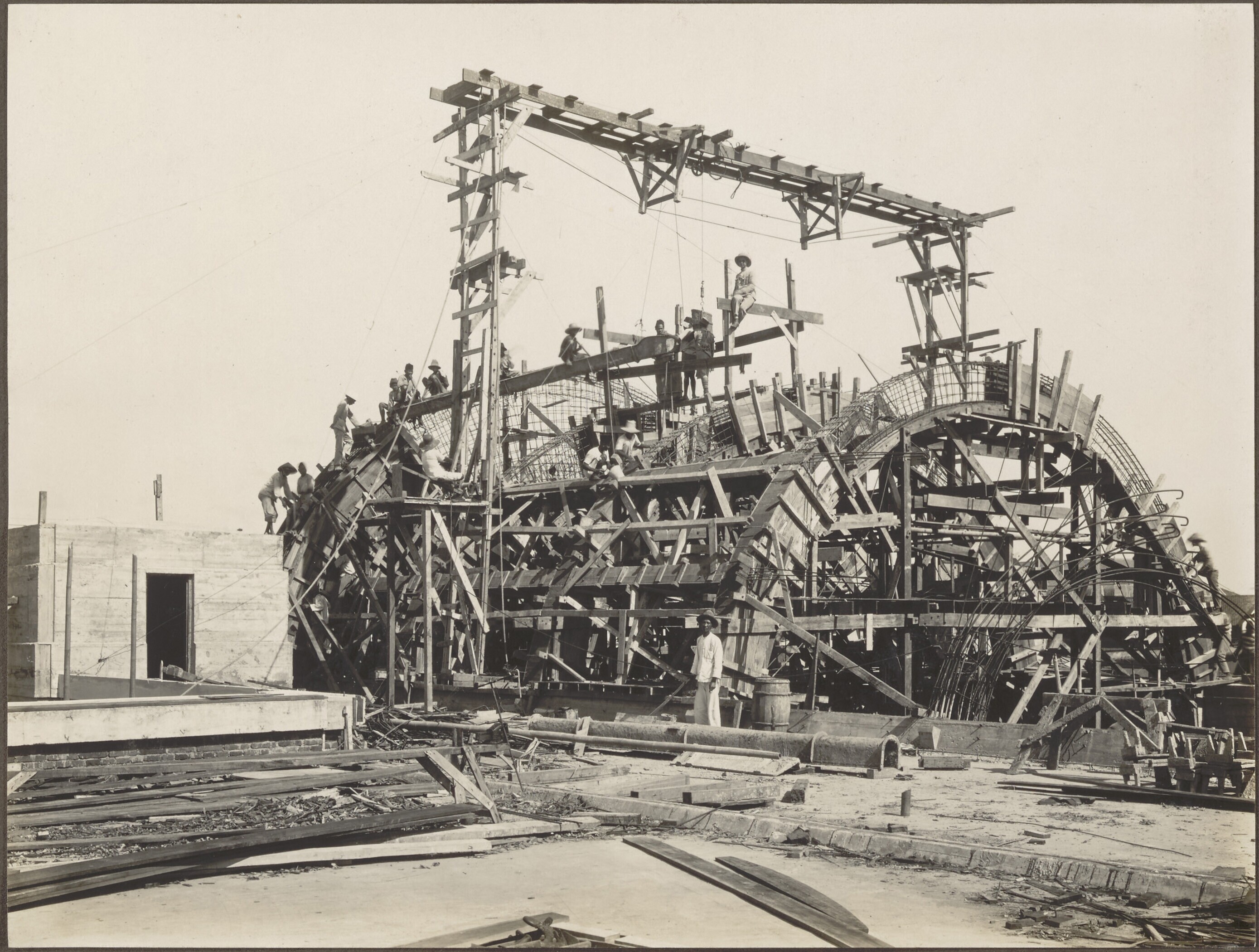 Betonloods C in aanbouw tijdens de aanleg van het ma...