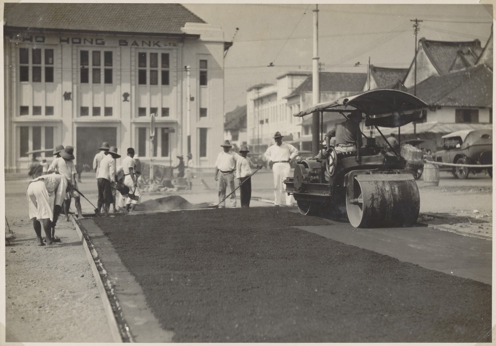 Station square being asphalted in front of Batavia's...