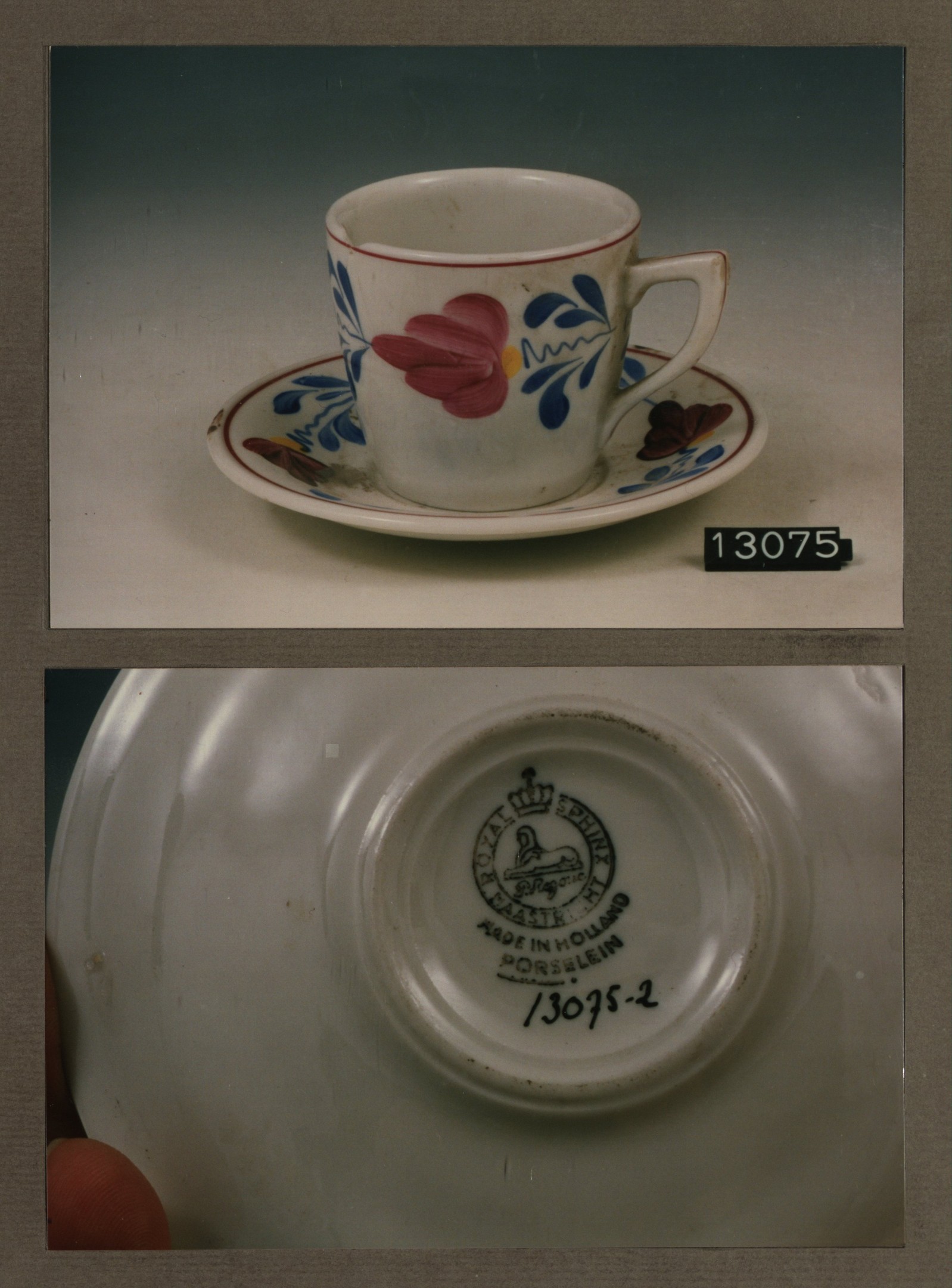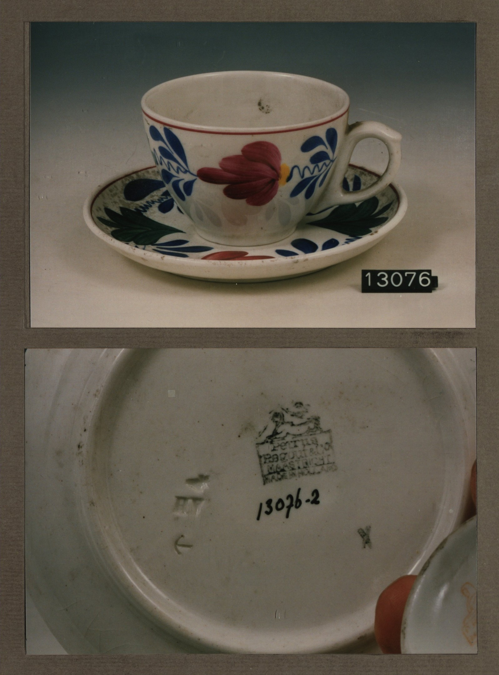 Kop en schotel, model P 2 Mocca met decor 15