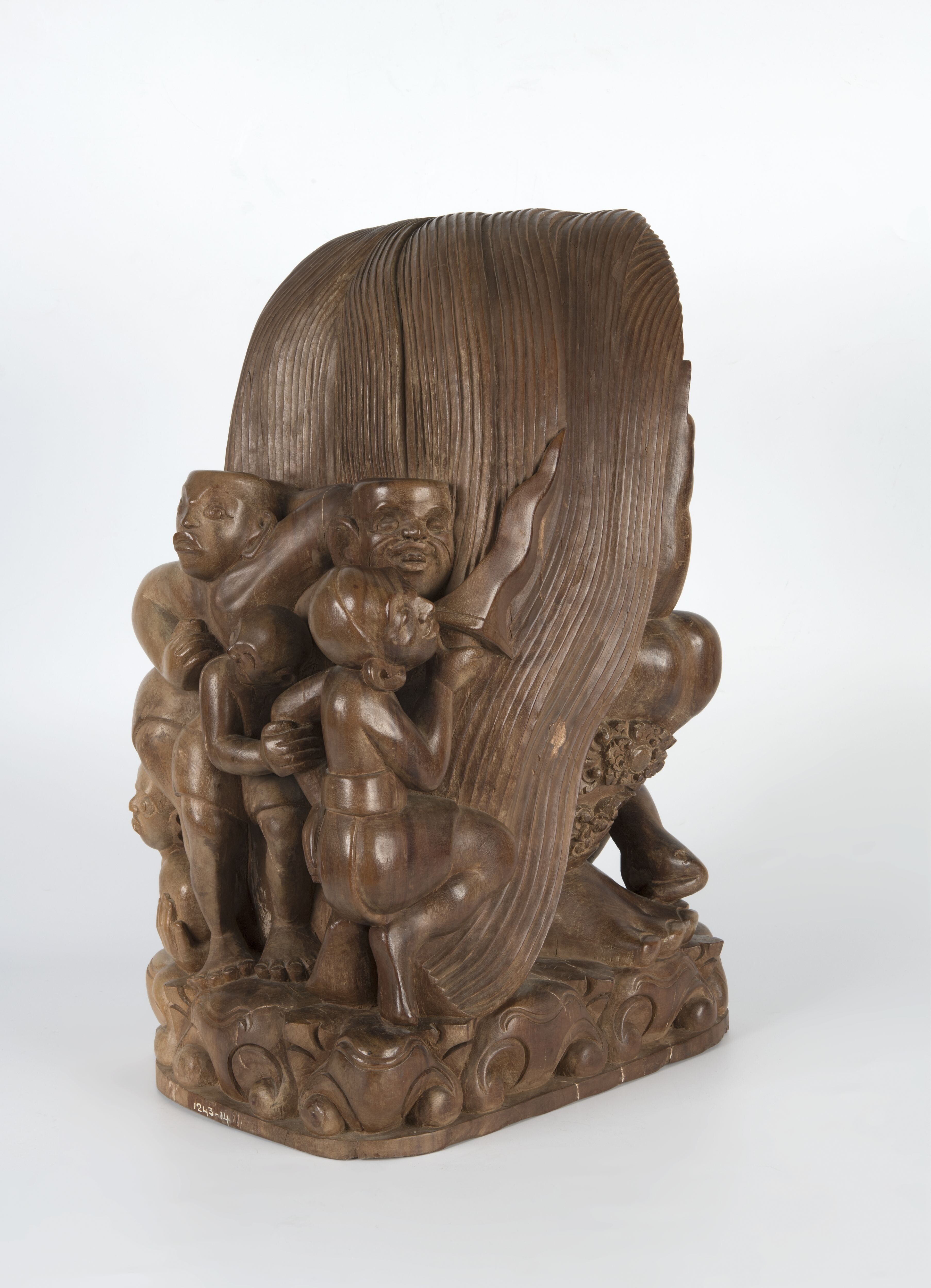 Houten beeld van de heks-weduwe Rangda, aangevallen ...