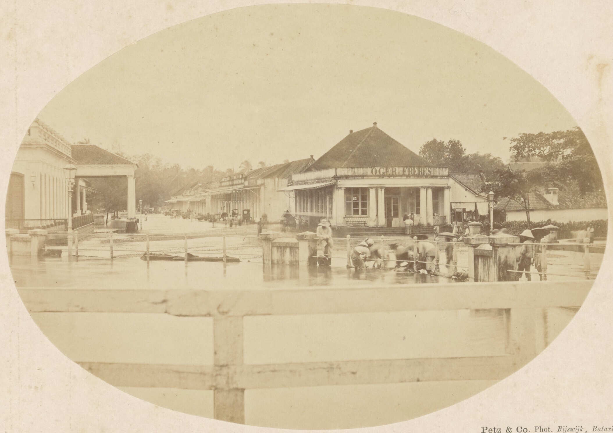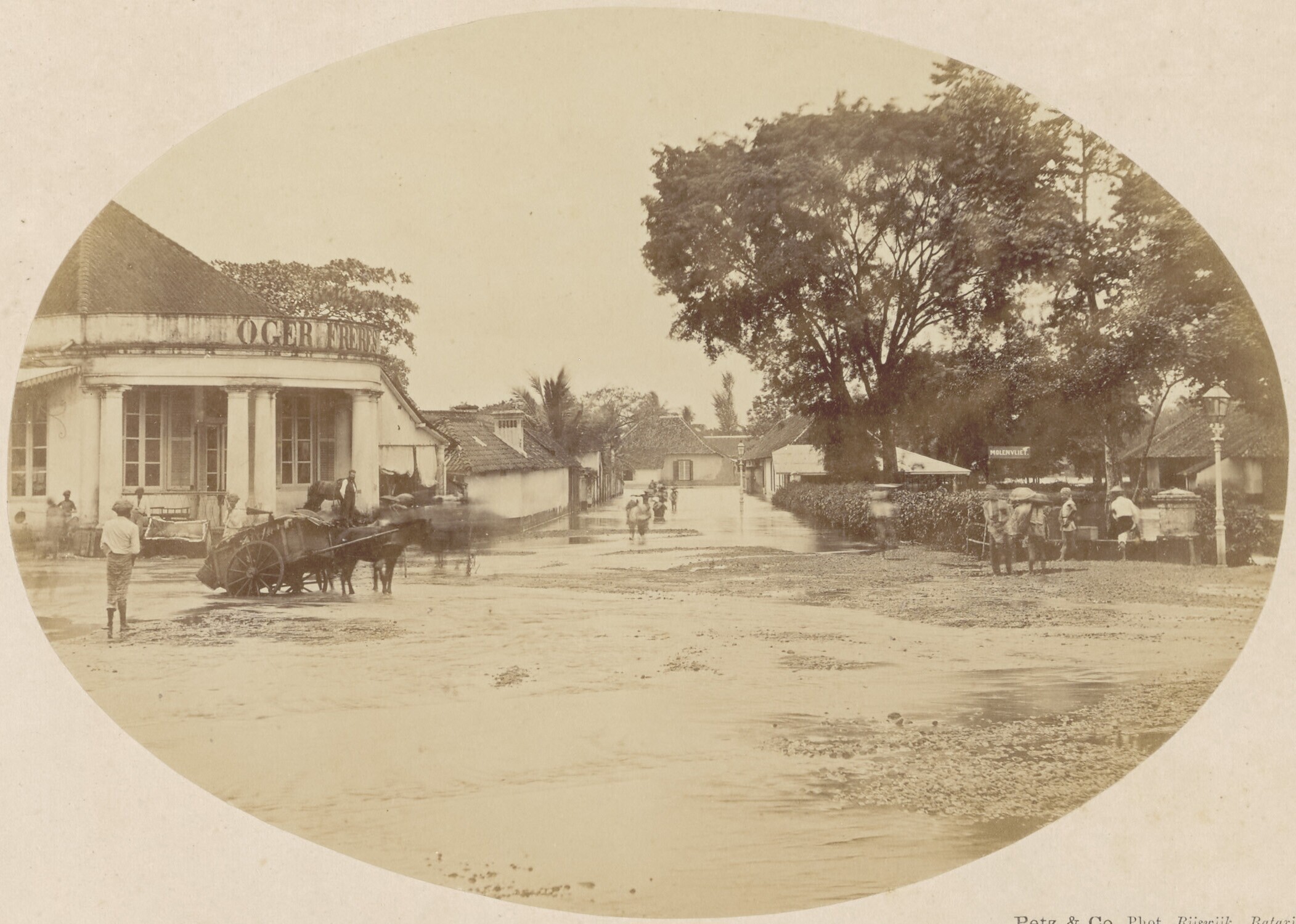 The 'Oger Frères' shop in a flooded street in Batavia