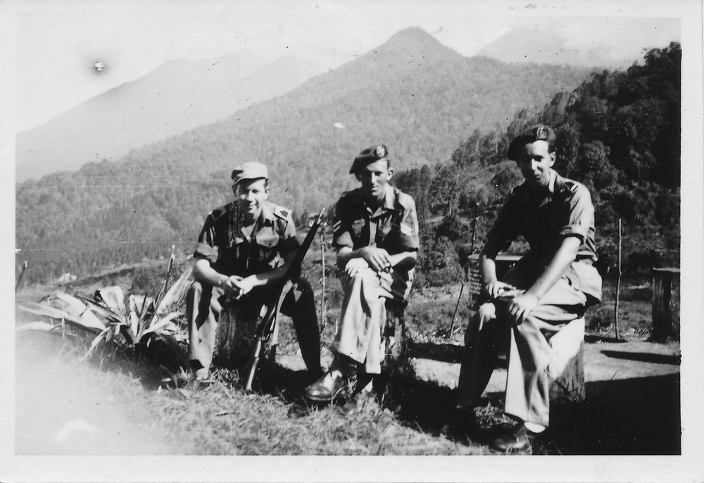 Drie jonge korporaals uit Ede op de Poentjak