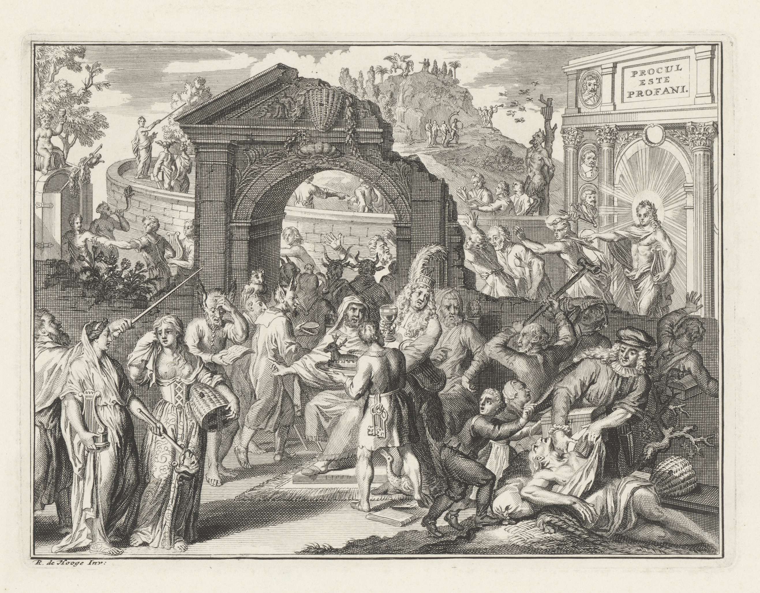 Spotprent op de Schouwburgstrijd, ca. 1685