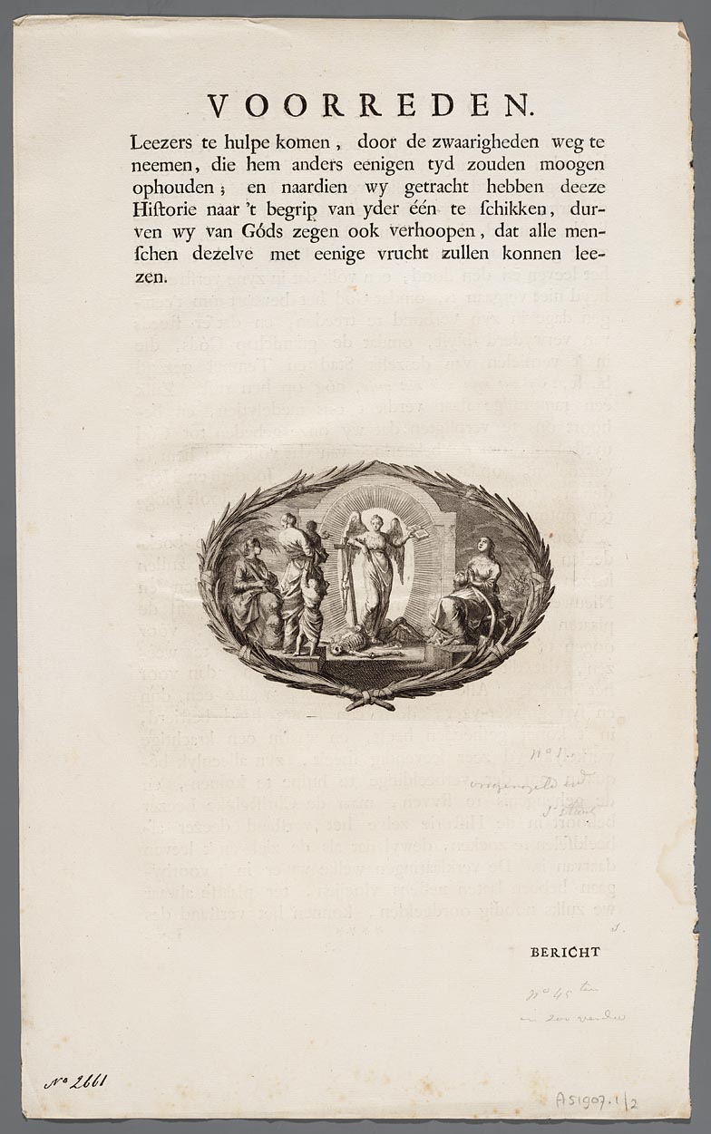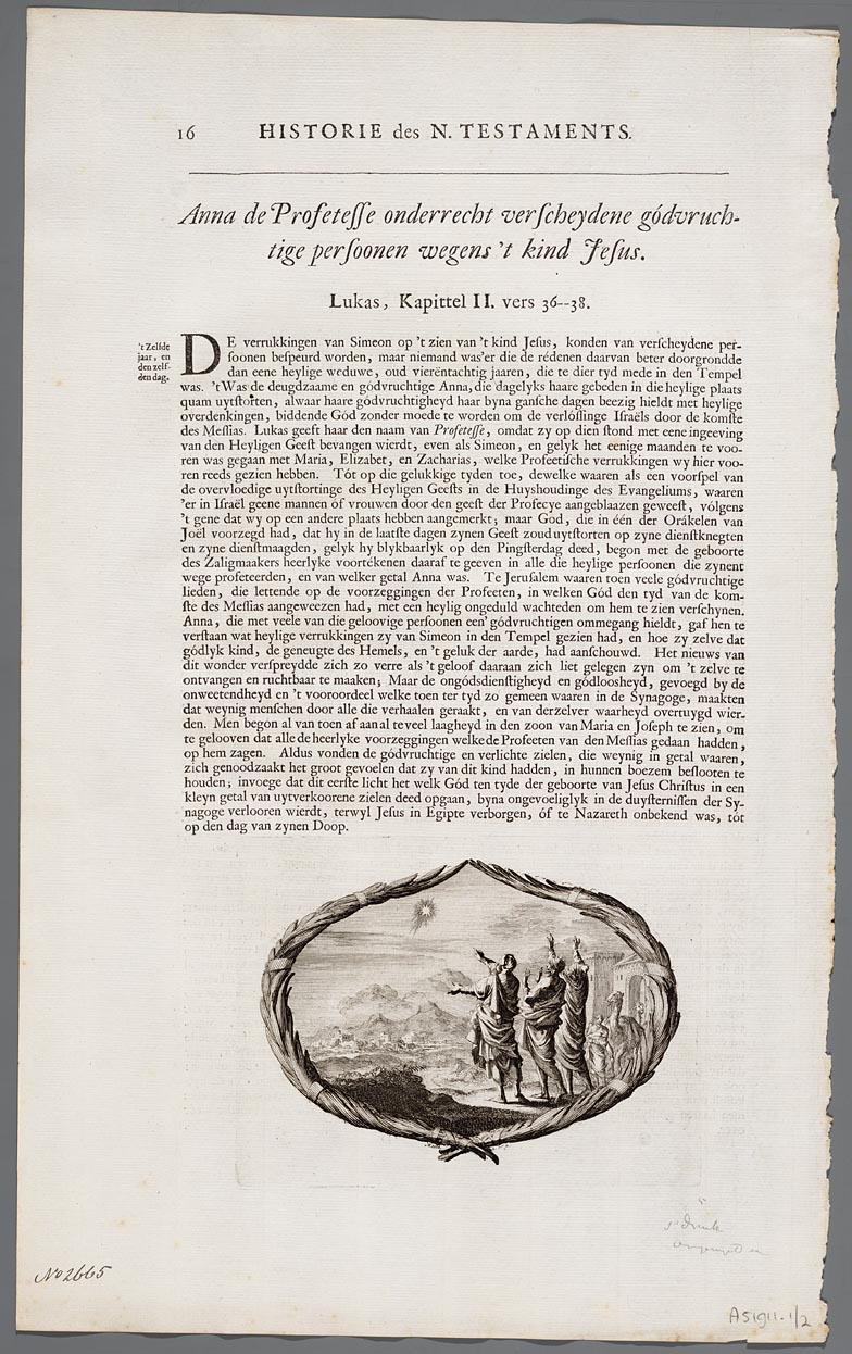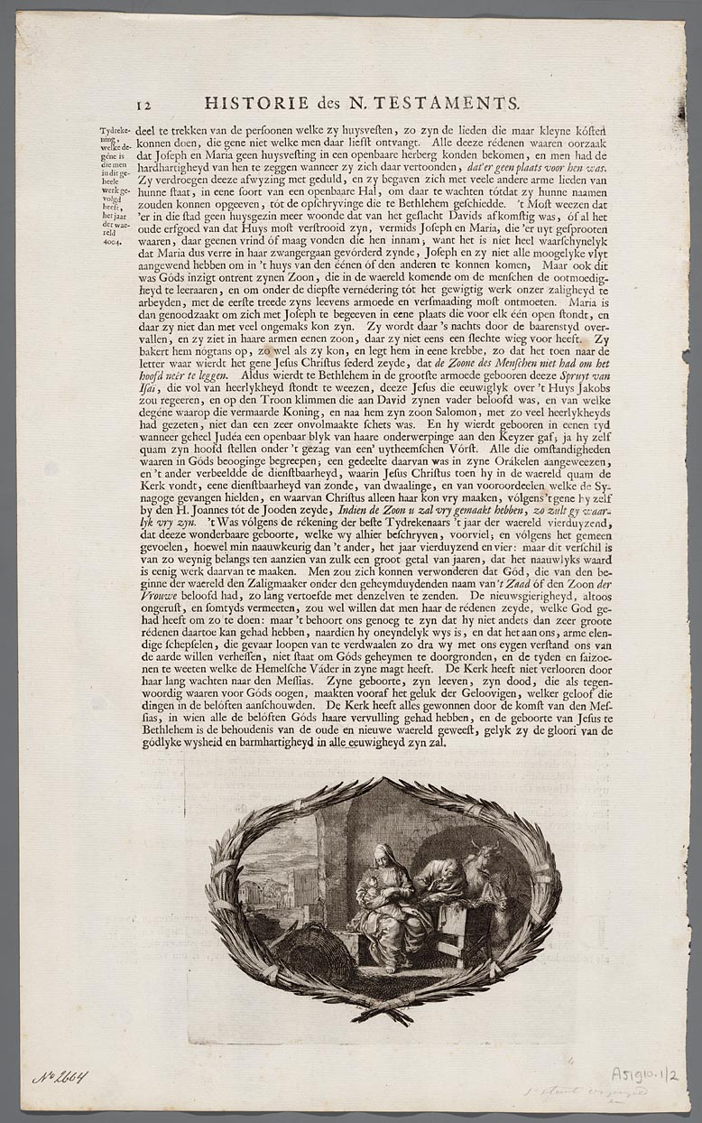 Blad met prent op tekstpagina en tekstpagina uit "Hi...
