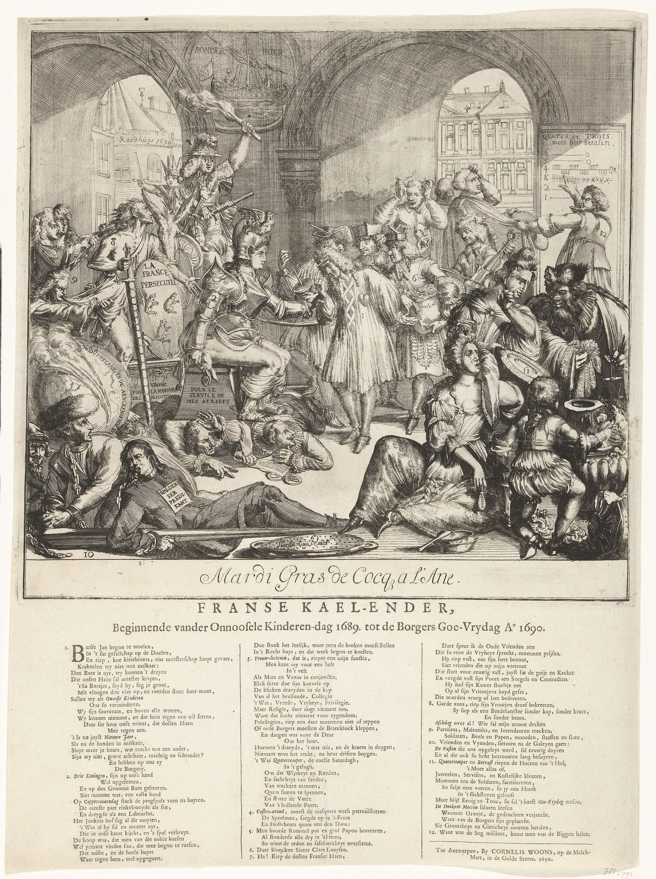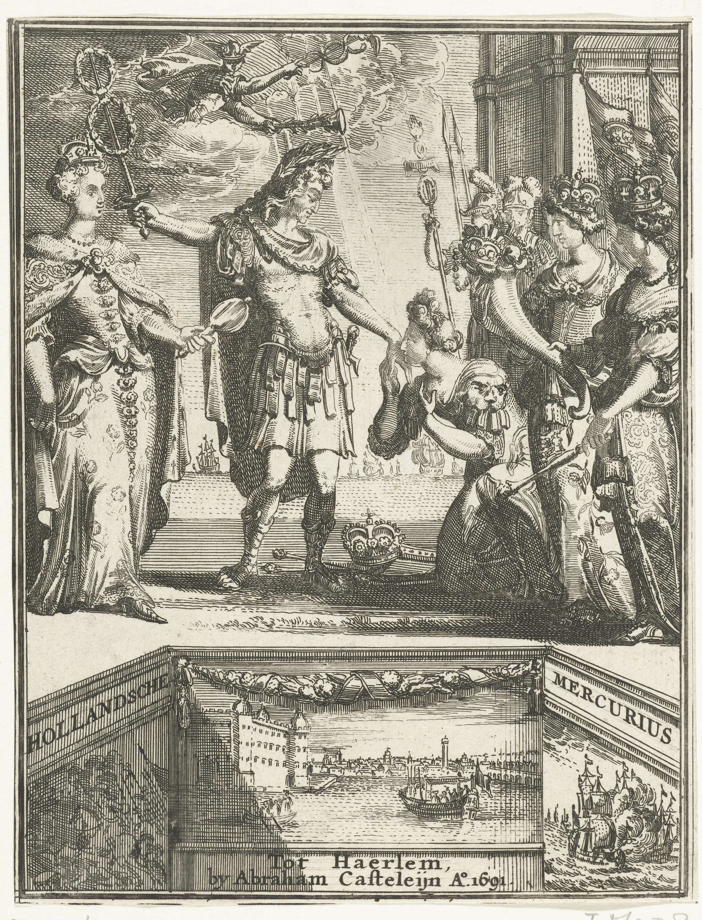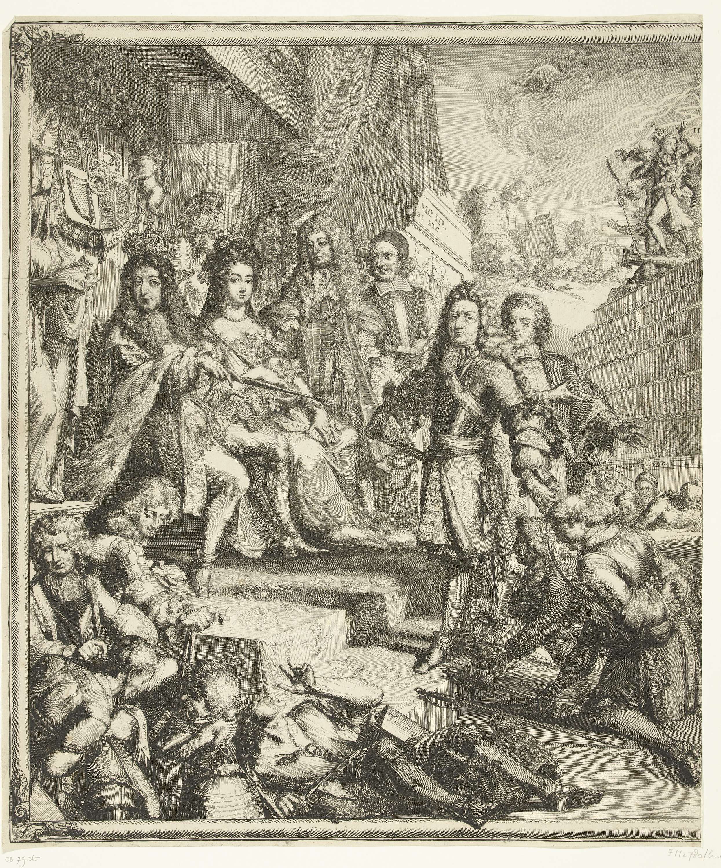Allegorie op de gebeurtenissen in 1689 met Willem II...