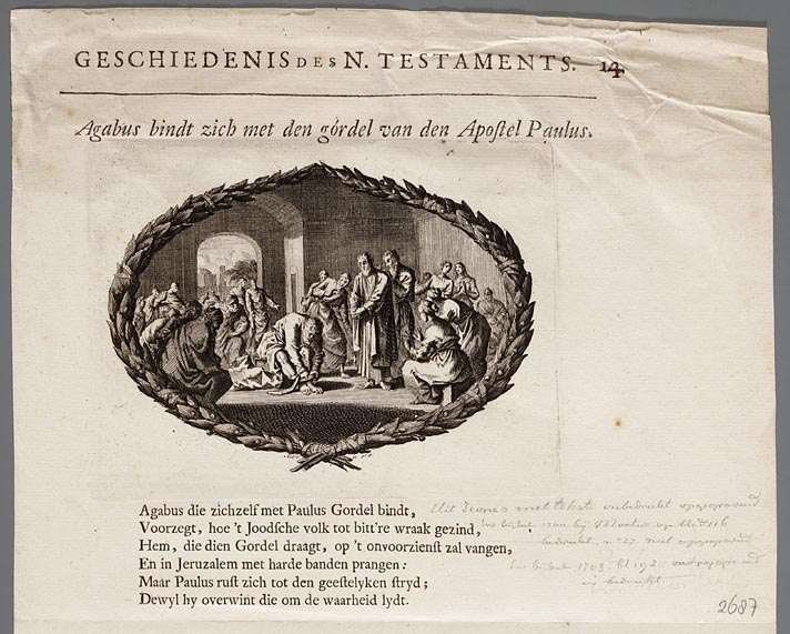 Agabus bindt zich met den gordel van Paulus
