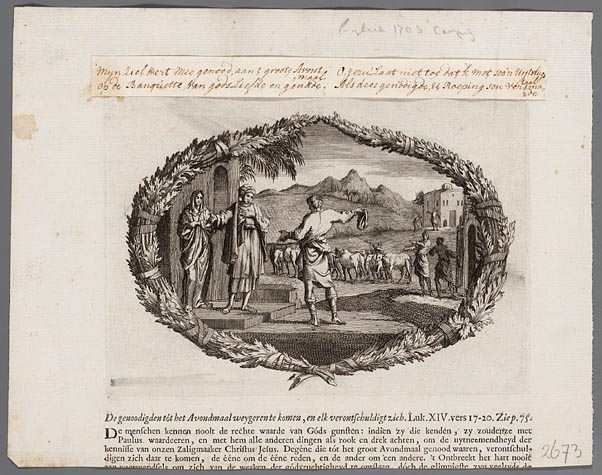 De genoodigden tot het avondmaal weygeren te koomen,...