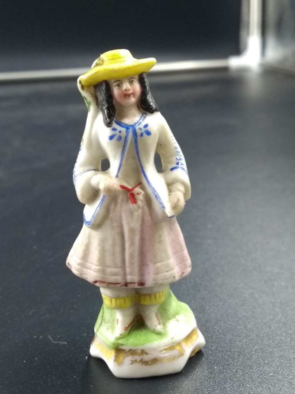 Kleurrijk beeldje van vrouw.