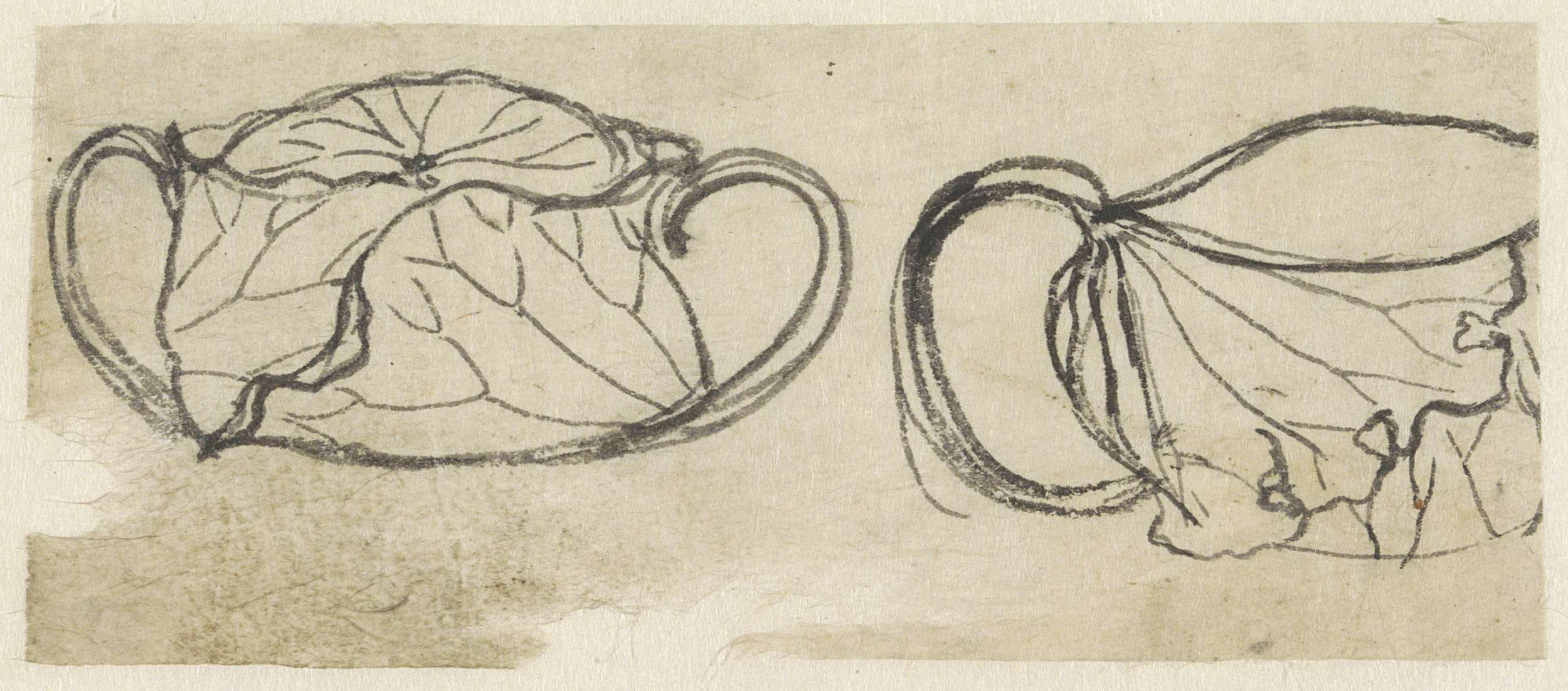 Schetsblad met gevouwen lotusbladeren