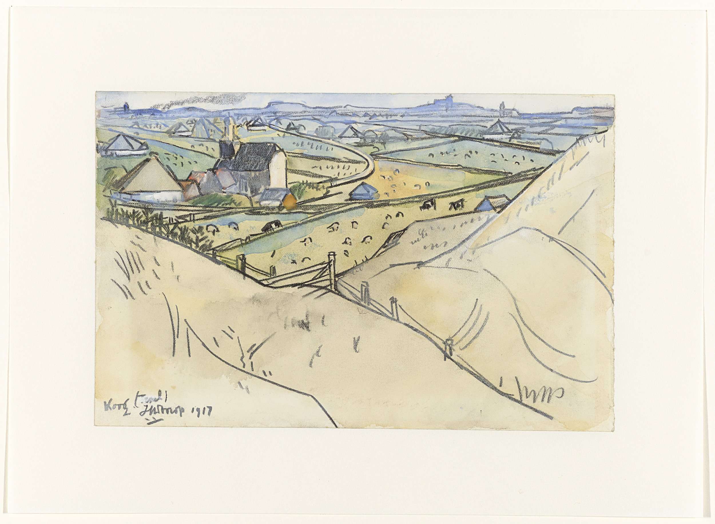 Gezicht uit de duinen op Koog te Texel