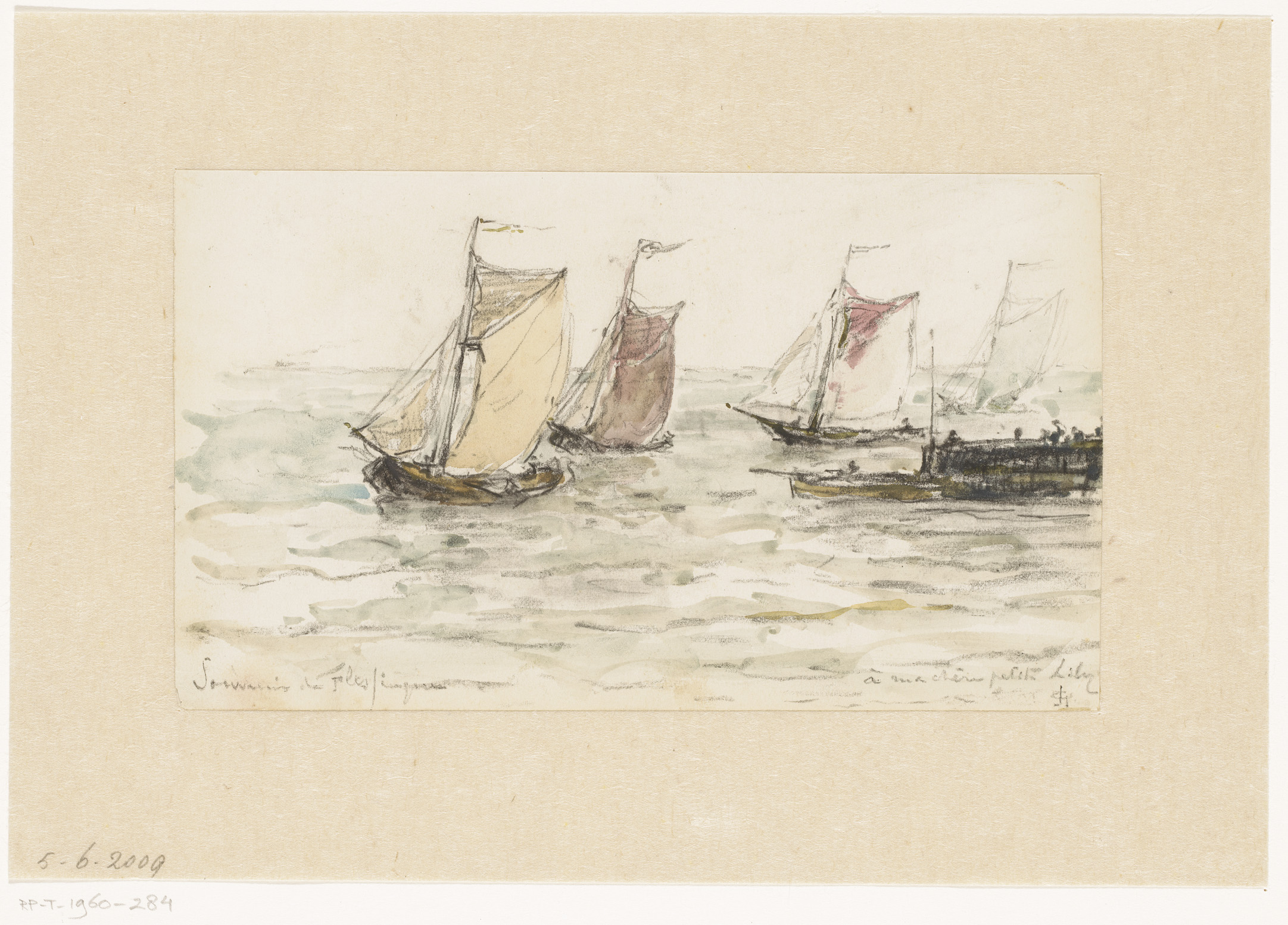 Schetsblad met roeiboot