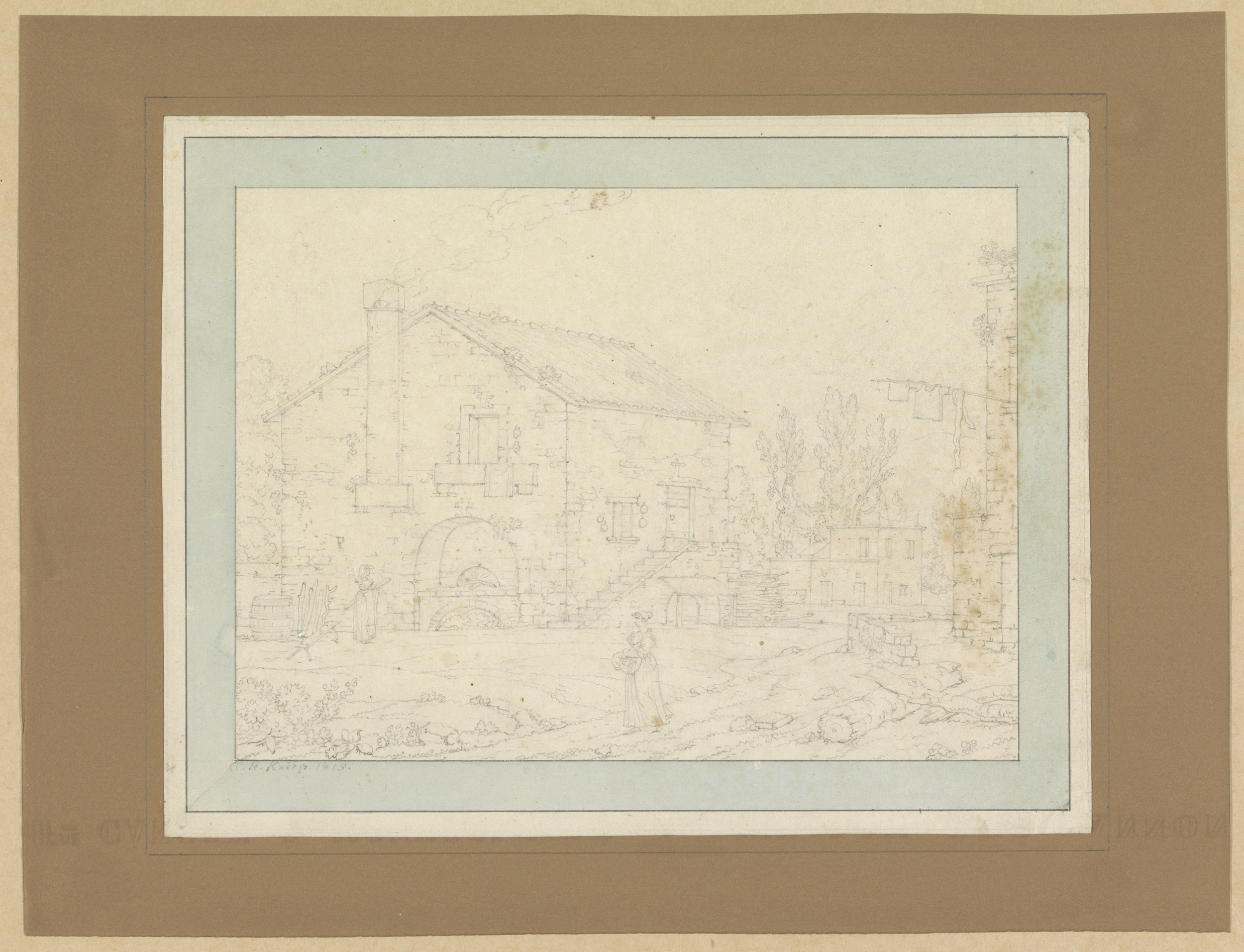Landhuis en erf met twee vrouwen