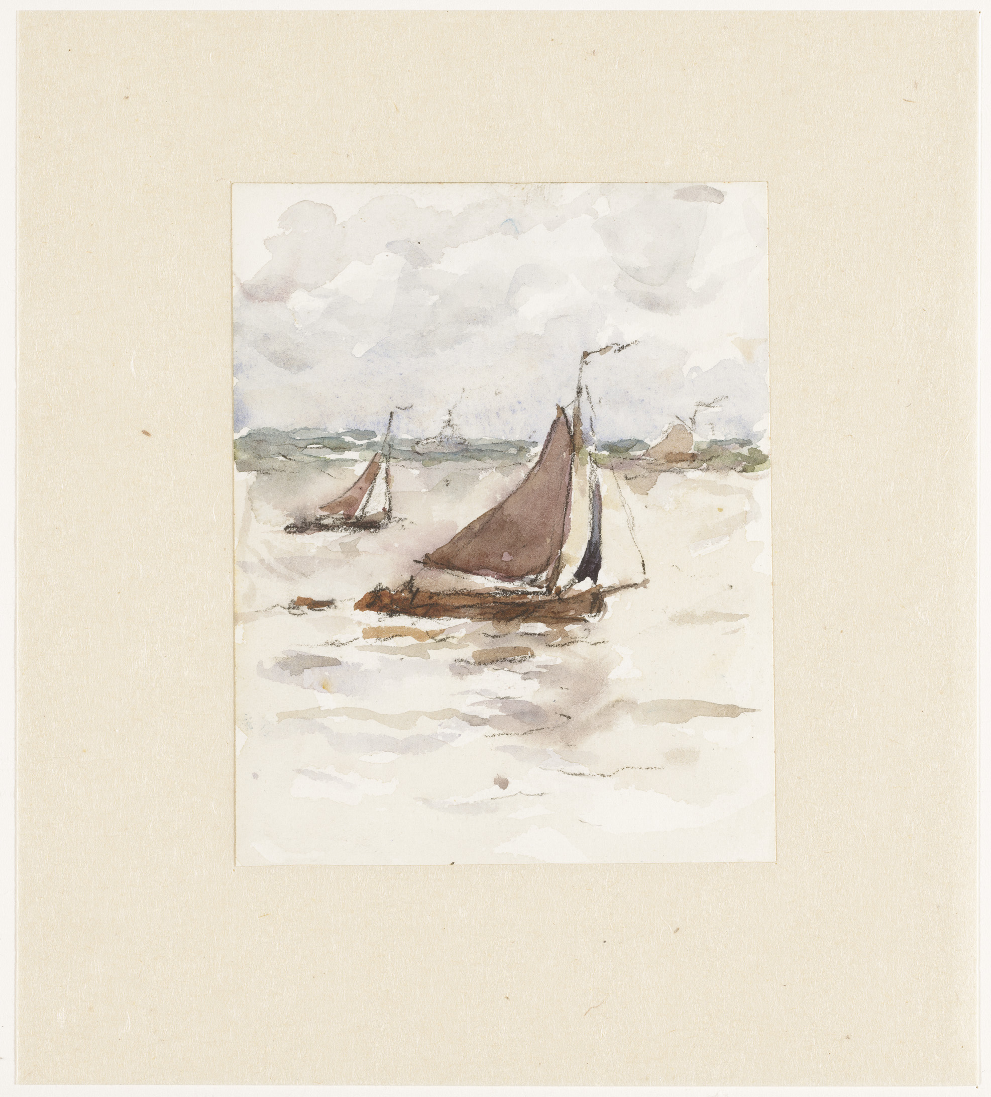 Zeilende vissersschepen op de Schelde