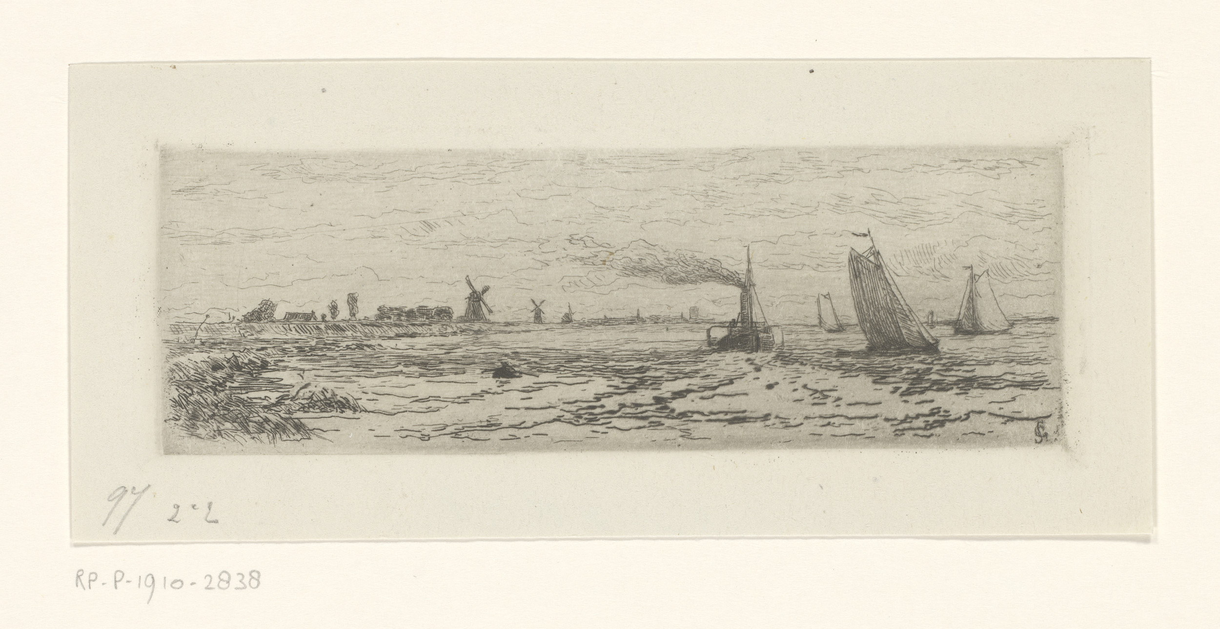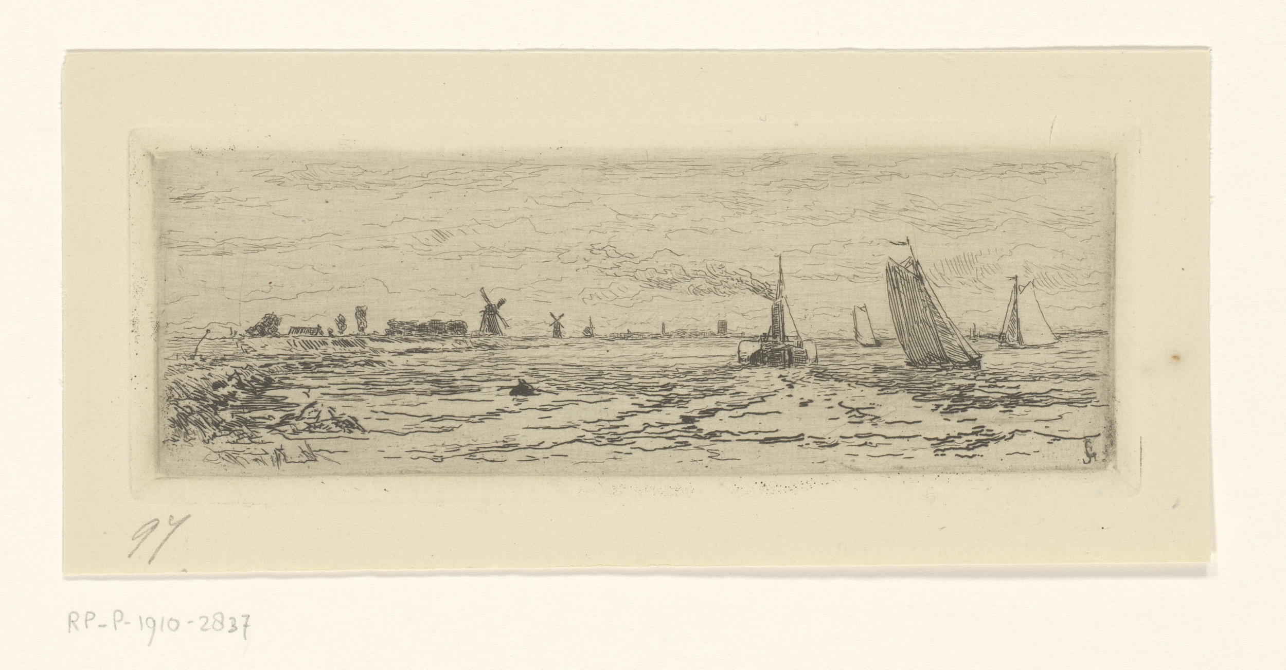Gezicht op de Maas tussen Dordrecht en Rotterdam